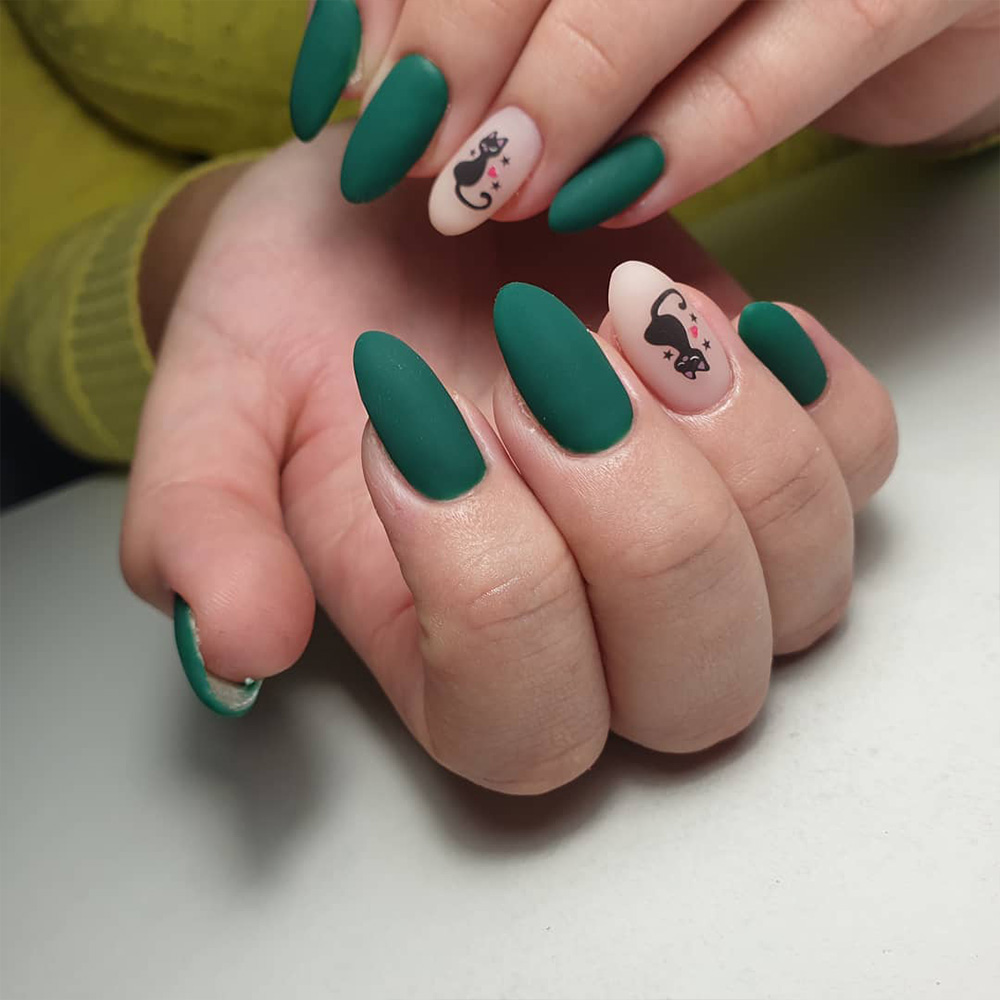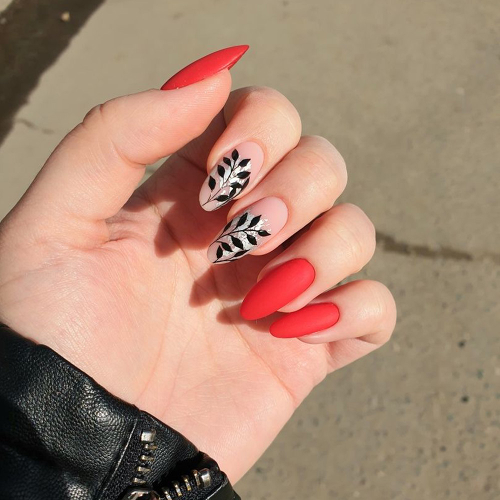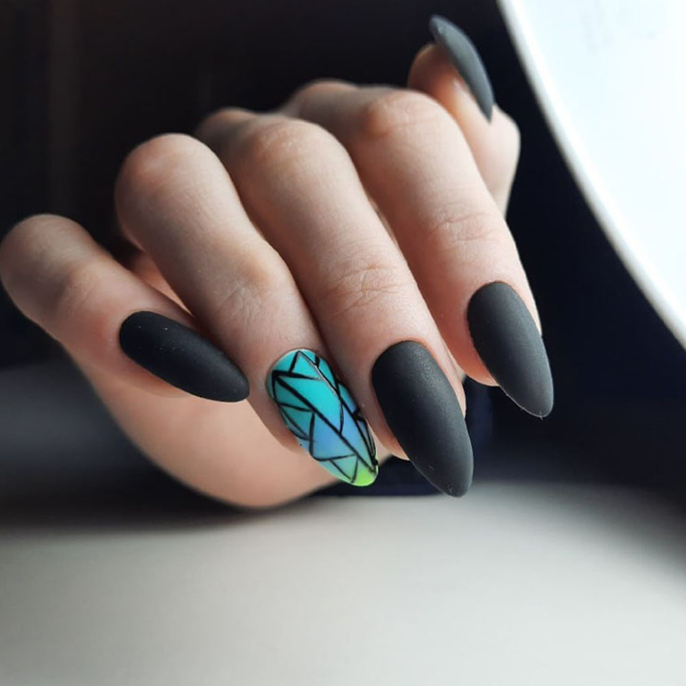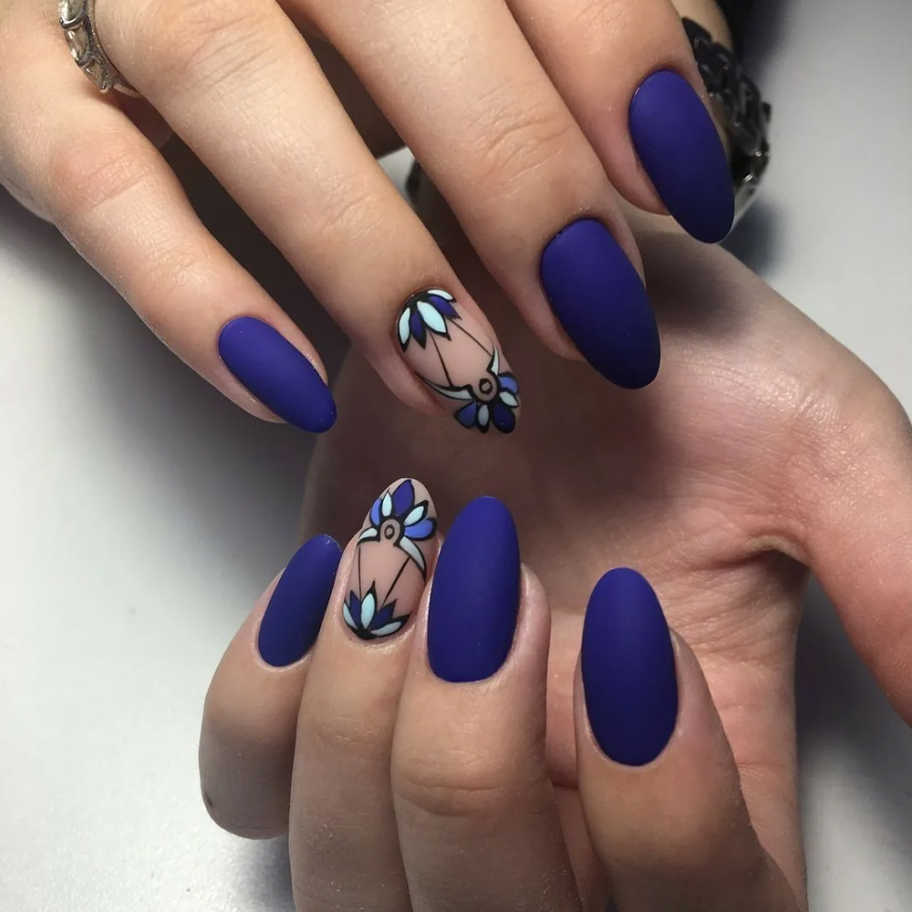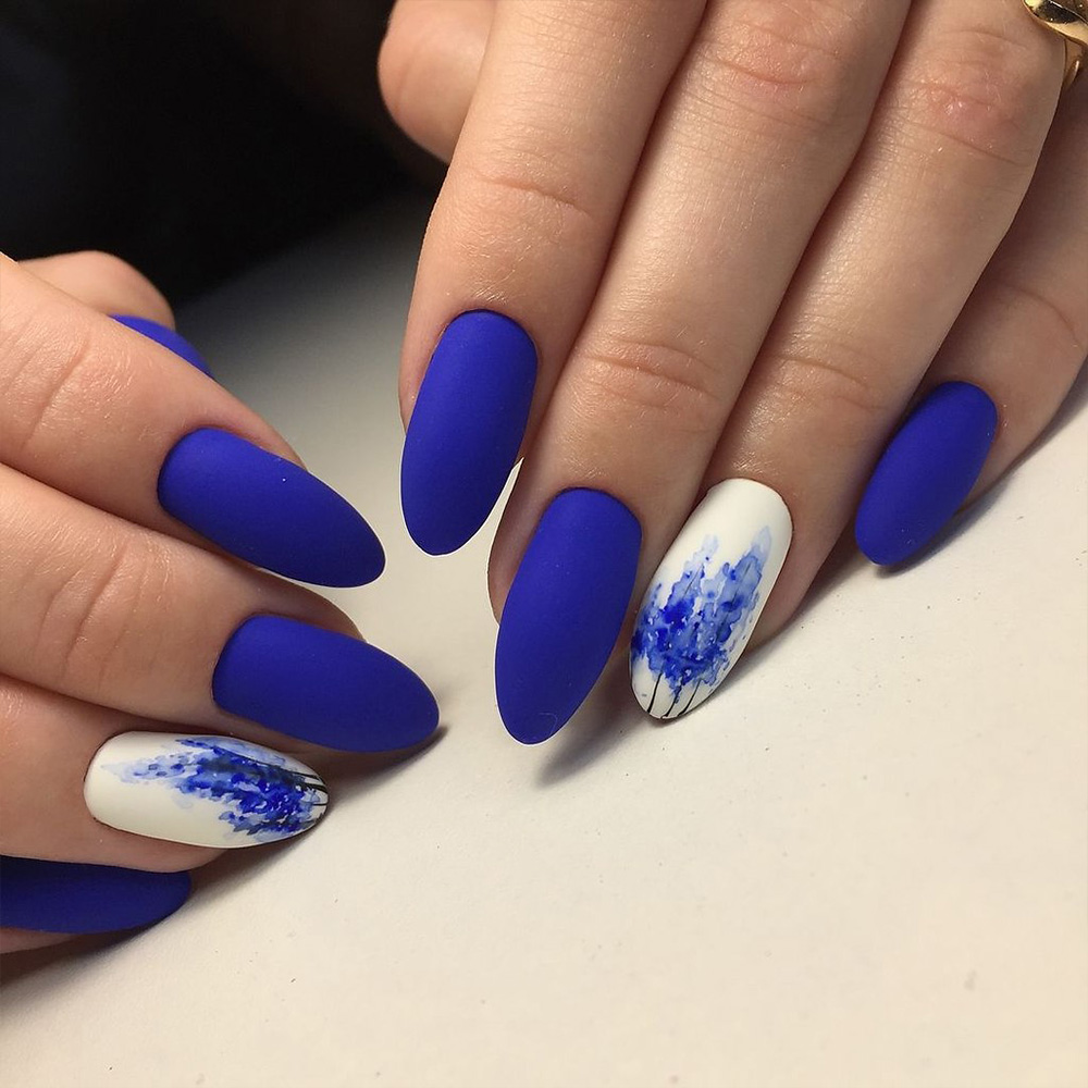 Добиться этого эффекта можно с помощью специального матового лака или топа. Длинные матовые ногти выглядят эффектно, не бросаются в глаза и не кажутся кричащими. Такой дизайн может удачно смотреться даже на заостренных ногтях. Матовый дизайн ногтей часто выбирают в холодный сезон, для вдохновения посмотрите нашу осеннюю подборку из 400 идей.