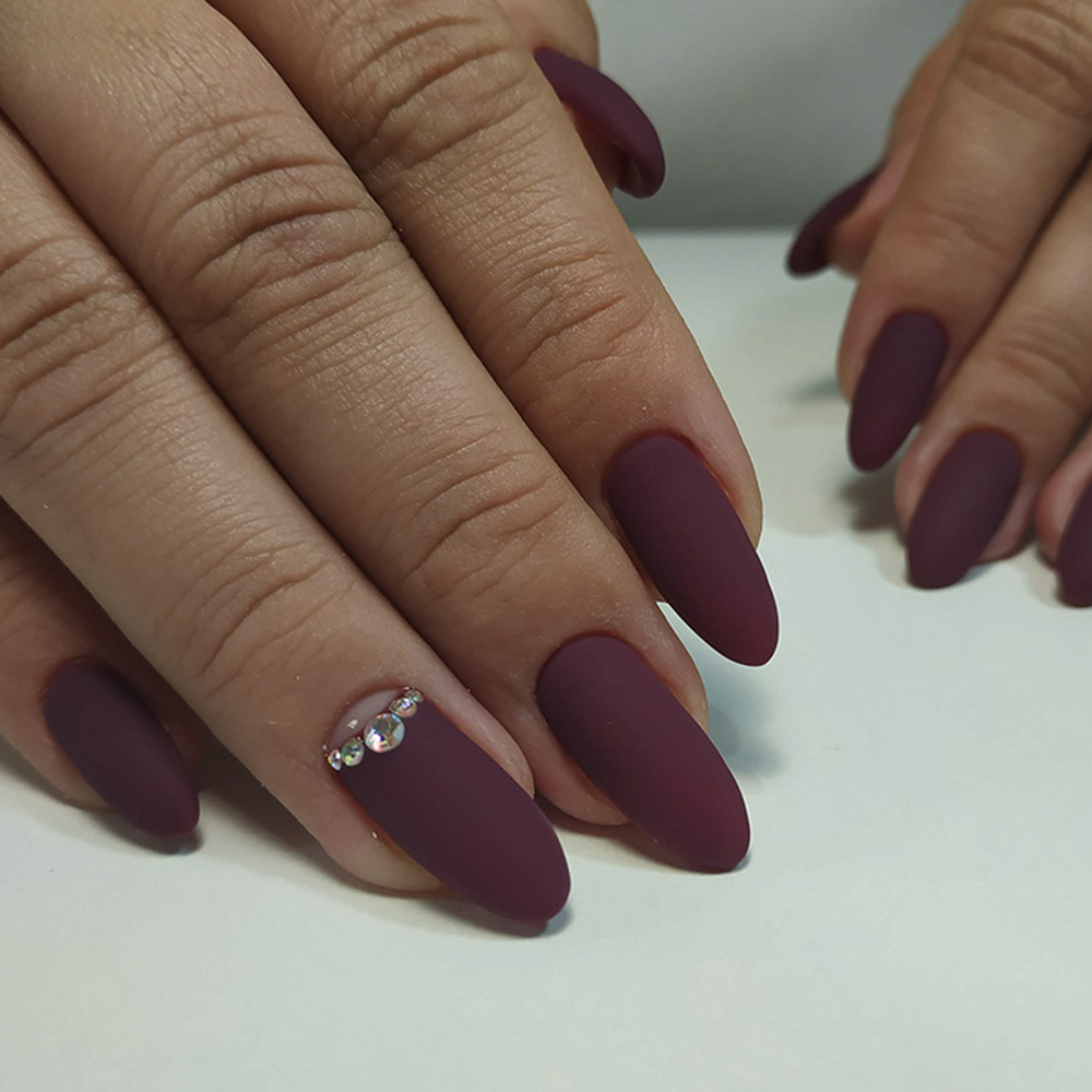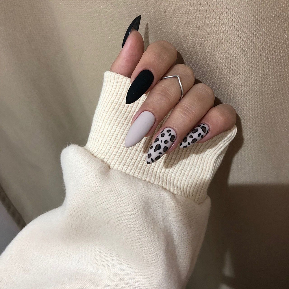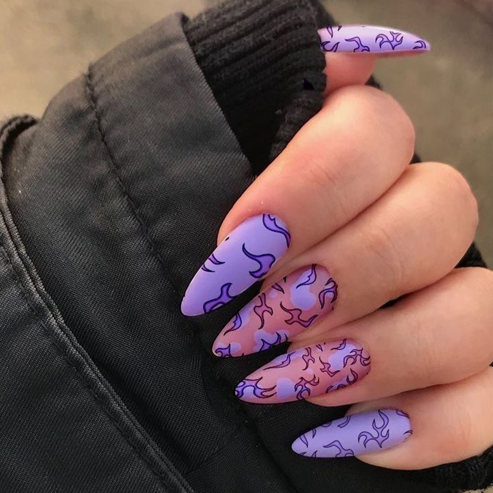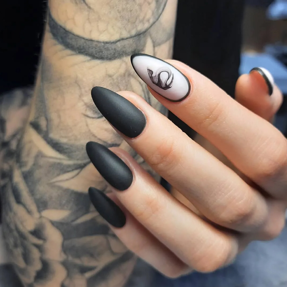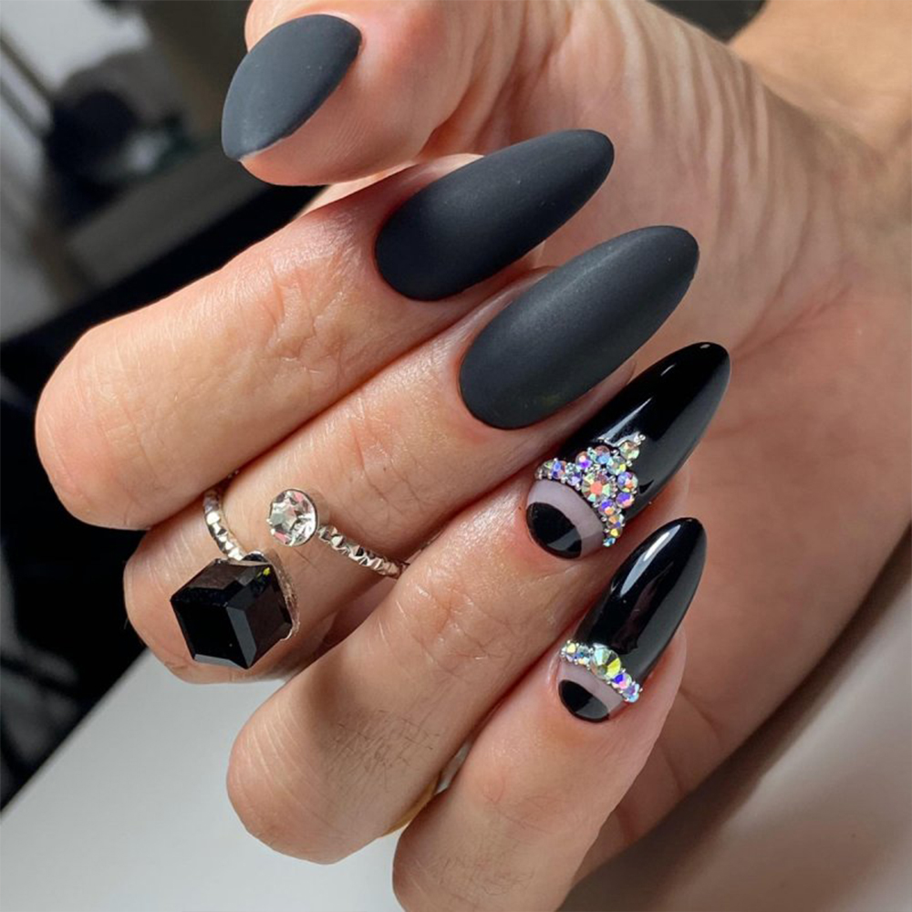 Добиться этого эффекта можно с помощью специального матового лака или топа. Длинные матовые ногти выглядят эффектно, не бросаются в глаза и не кажутся кричащими. Такой дизайн может удачно смотреться даже на заостренных ногтях. Матовый дизайн ногтей часто выбирают в холодный сезон, для вдохновения посмотрите нашу осеннюю подборку из 400 идей.