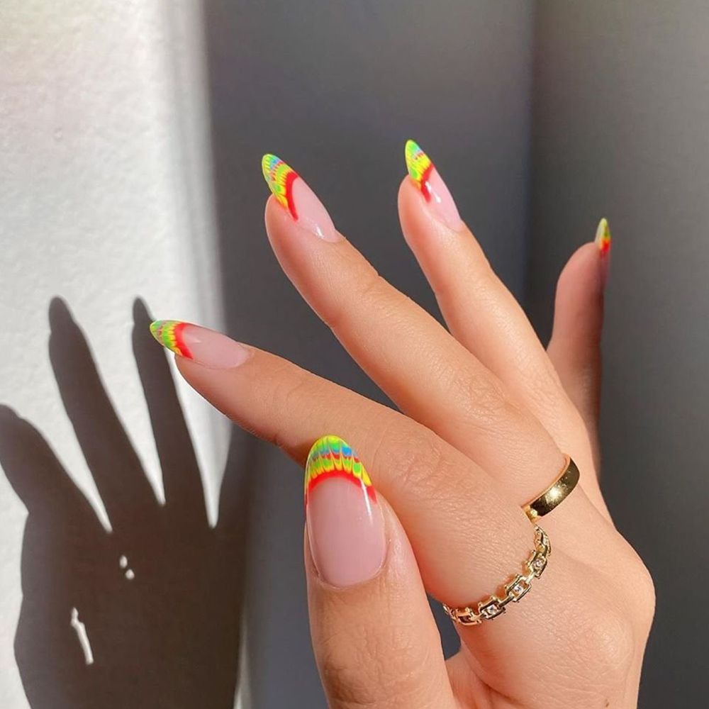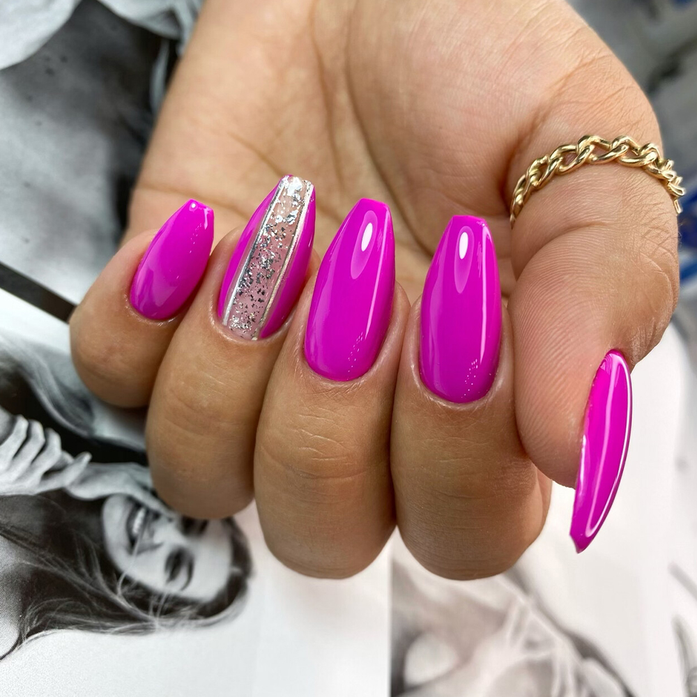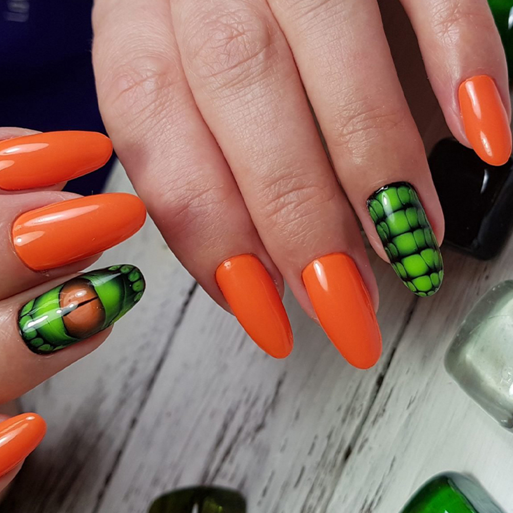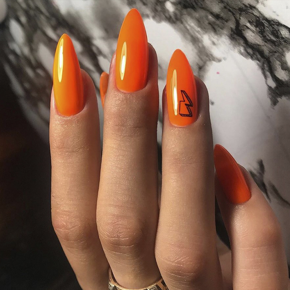 Яркие неоновые длинные ногти — тренд для самых смелых. Они помогут стать королевой вечеринки, быть в центре внимания и точно не остаться незамеченной в любой обстановке. Часто такие лаки светятся в темноте и завораживают ещё больше.