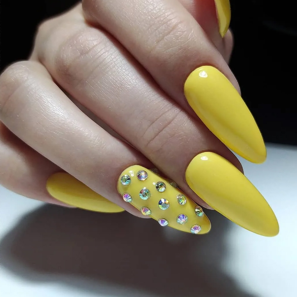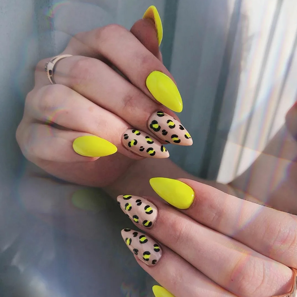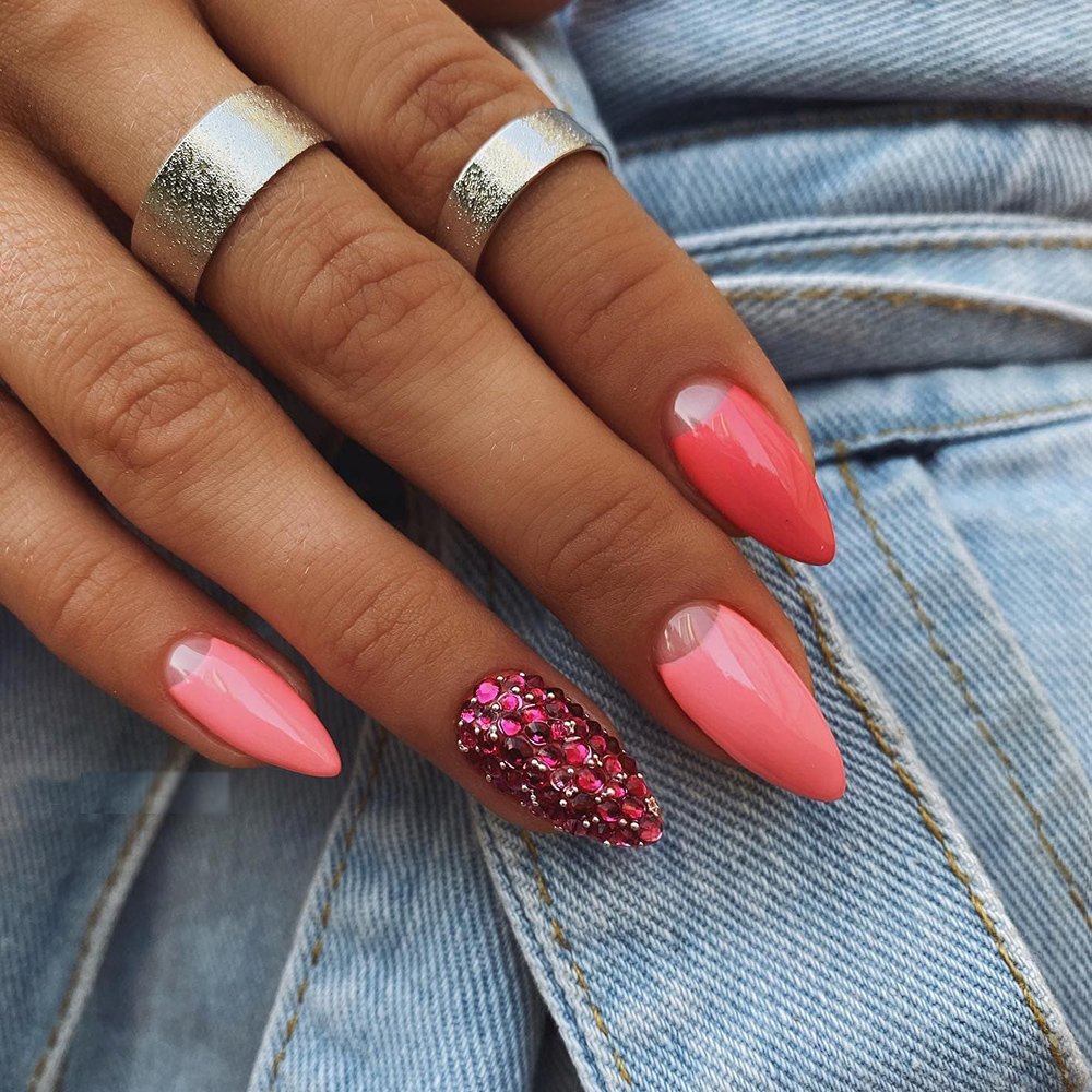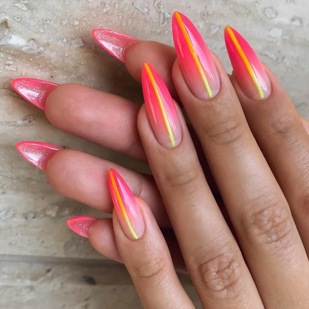 Яркие неоновые длинные ногти — тренд для самых смелых. Они помогут стать королевой вечеринки, быть в центре внимания и точно не остаться незамеченной в любой обстановке. Часто такие лаки светятся в темноте и завораживают ещё больше.