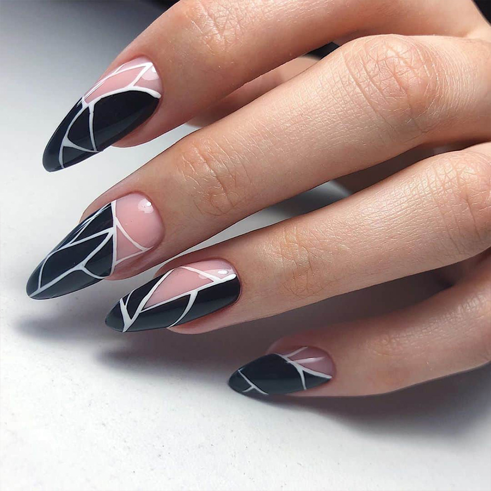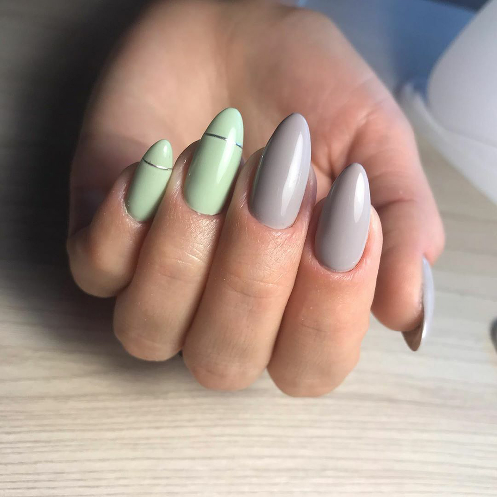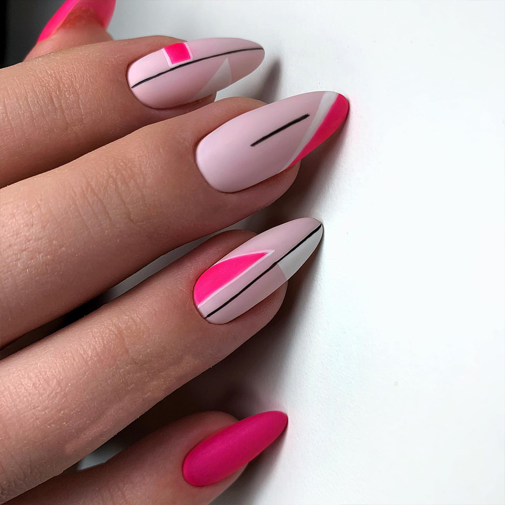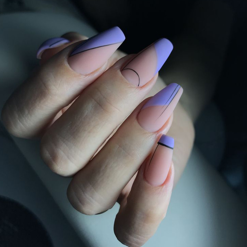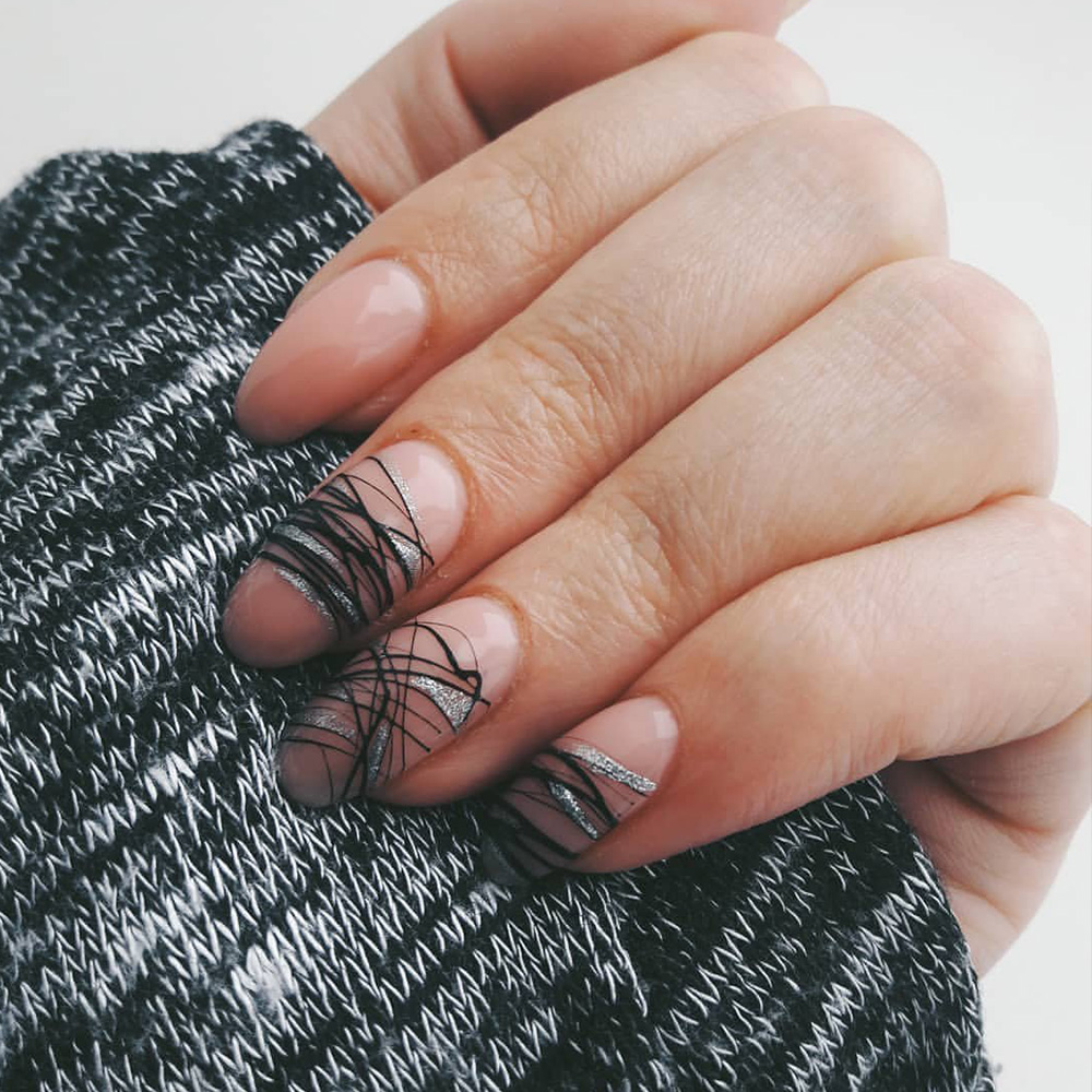 Квадратные и острые ноготки — идеальная форма для такого дизайна. Тонкие и толстые линии, их чередование или комбинация сделают дизайн необычным и будут привлекать взгляды.