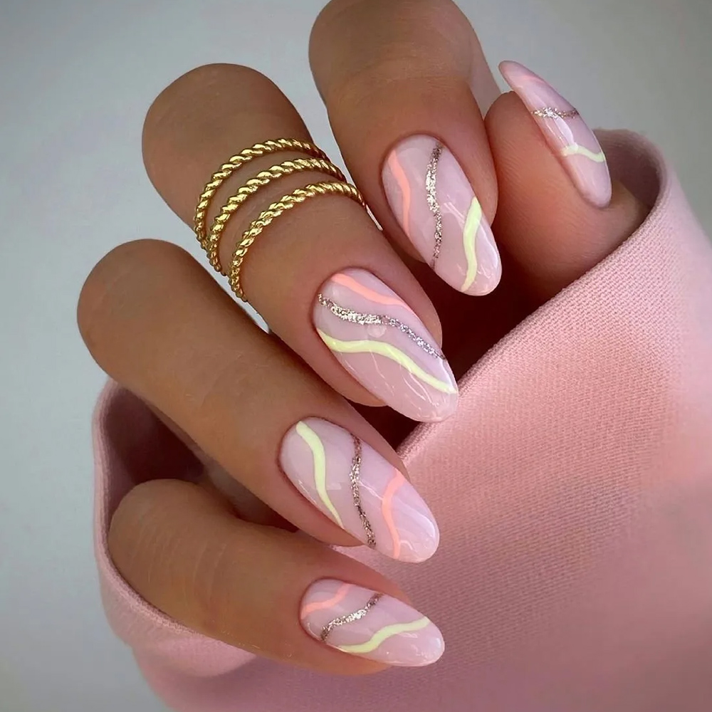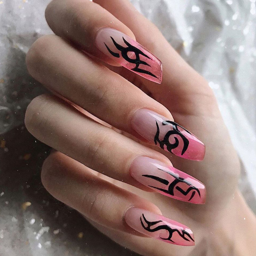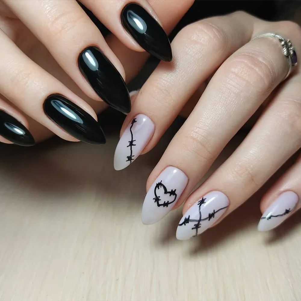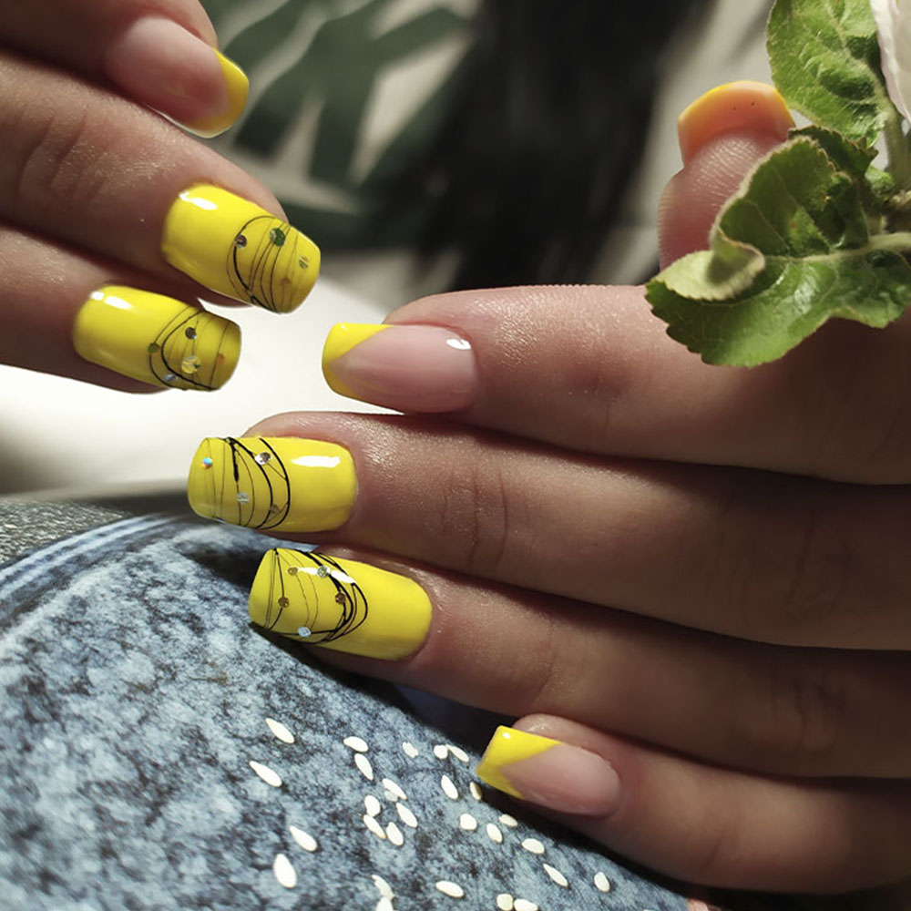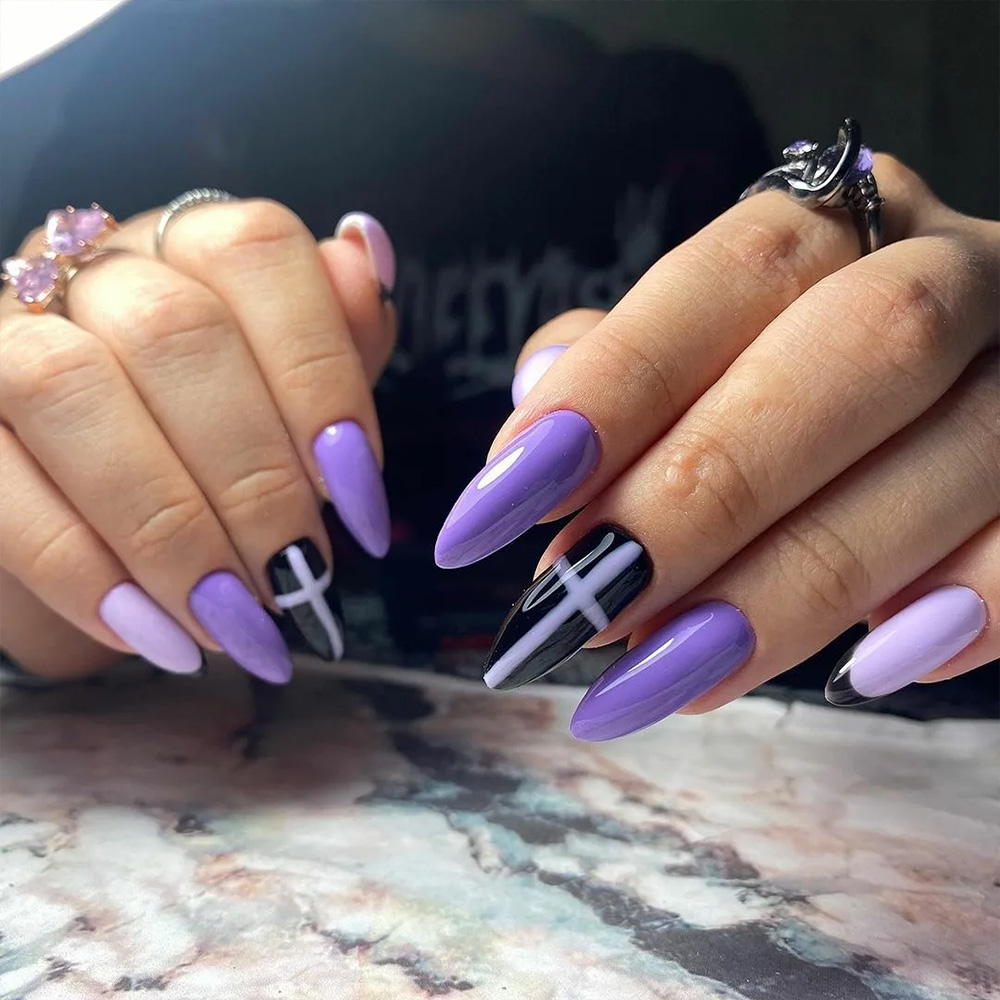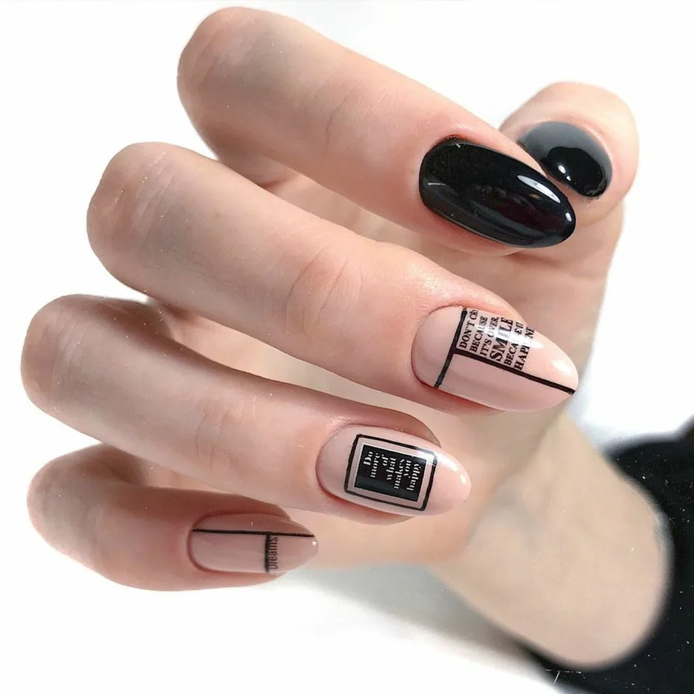 Квадратные и острые ноготки — идеальная форма для такого дизайна. Тонкие и толстые линии, их чередование или комбинация сделают дизайн необычным и будут привлекать взгляды.