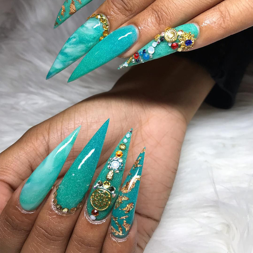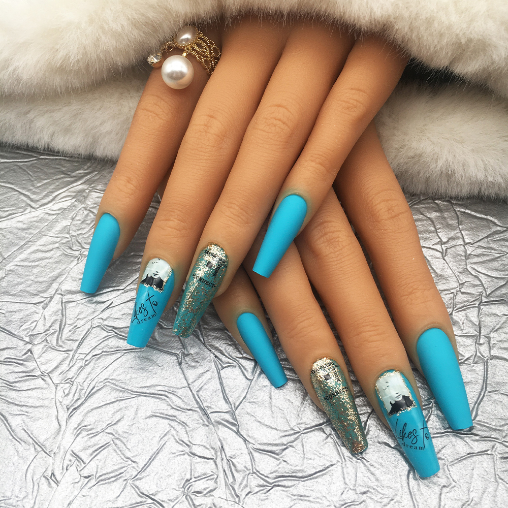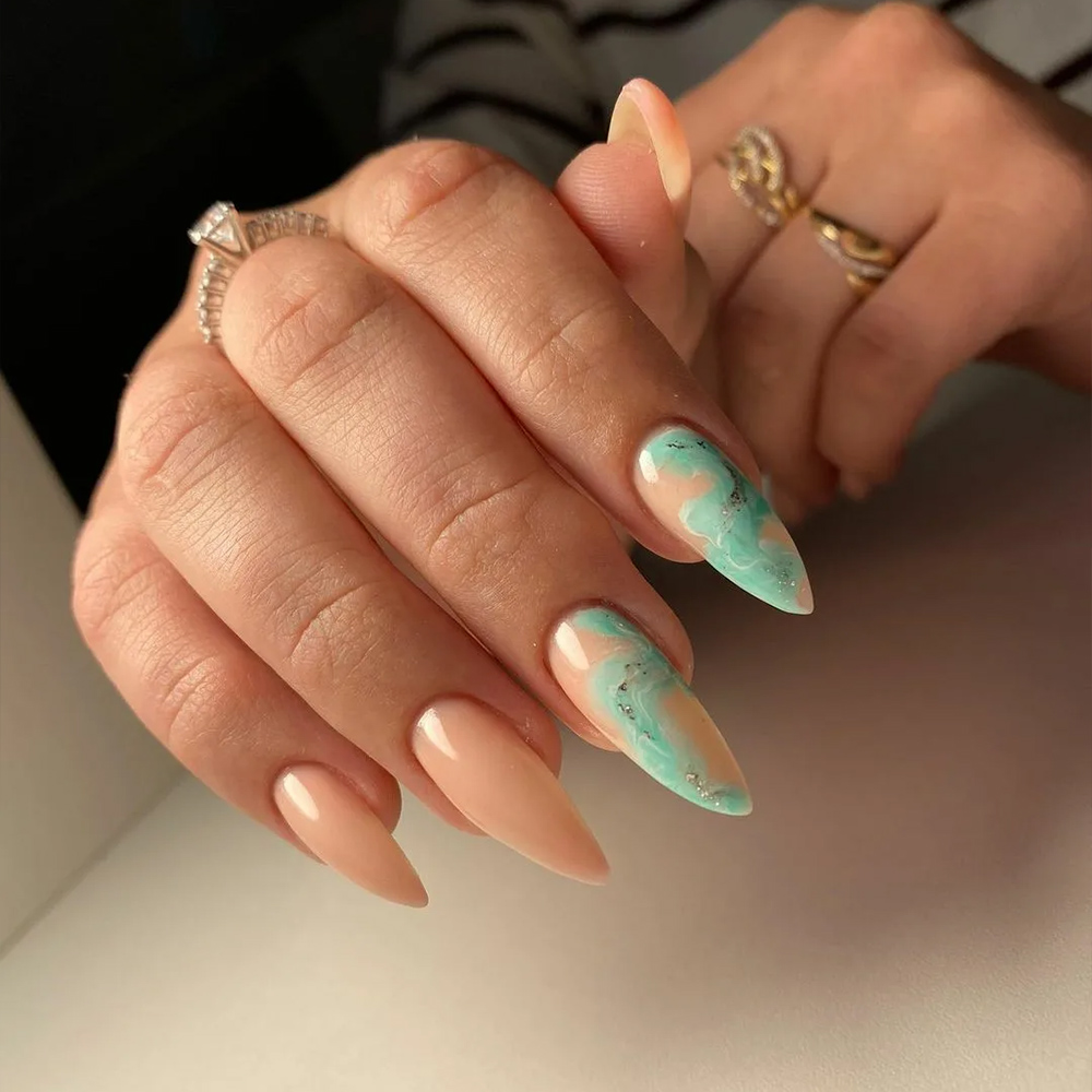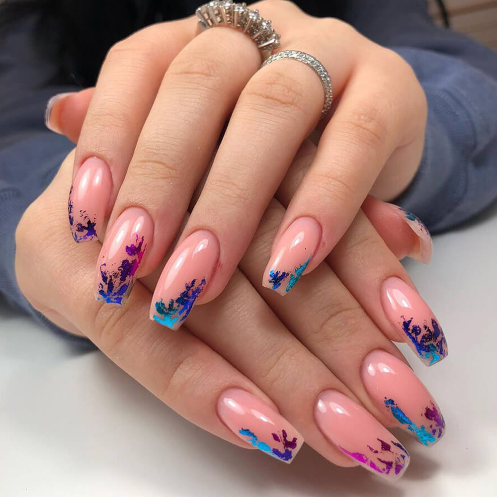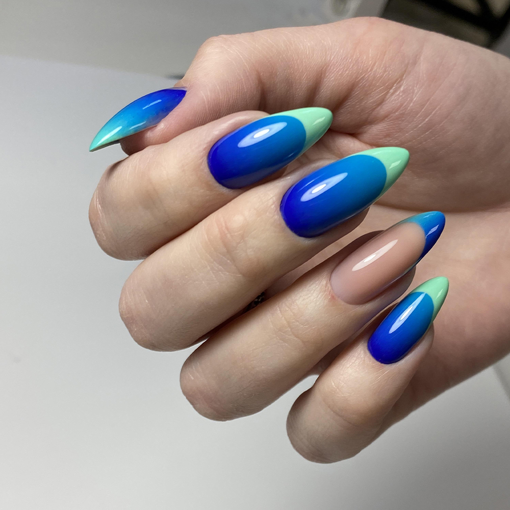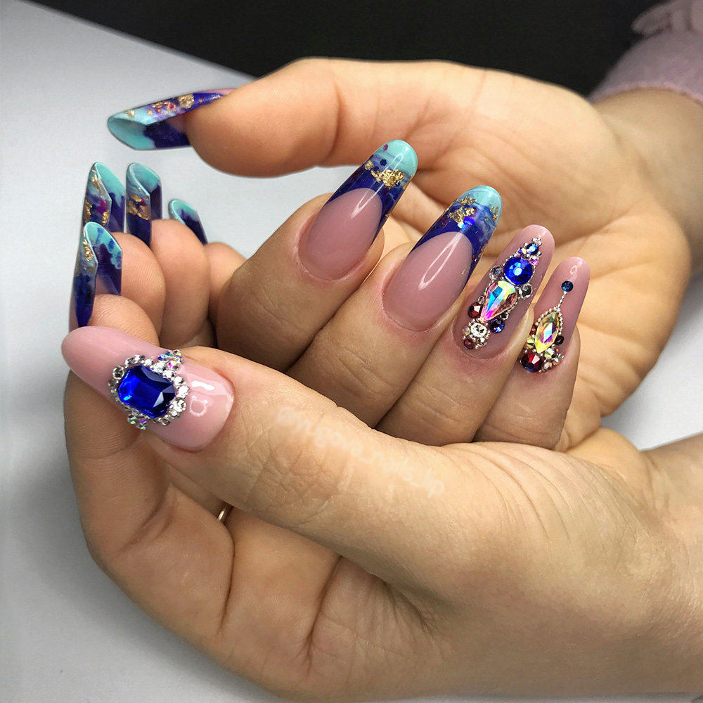 - Маникюр на длинные ногти с техникой «Аквариум».