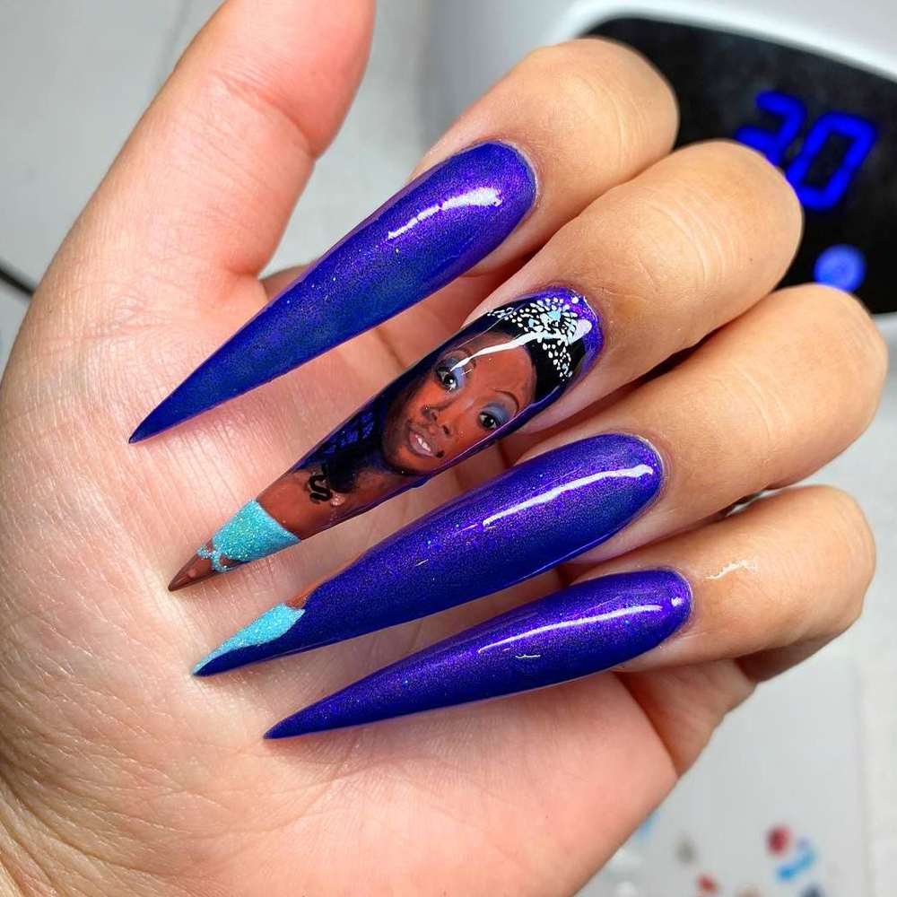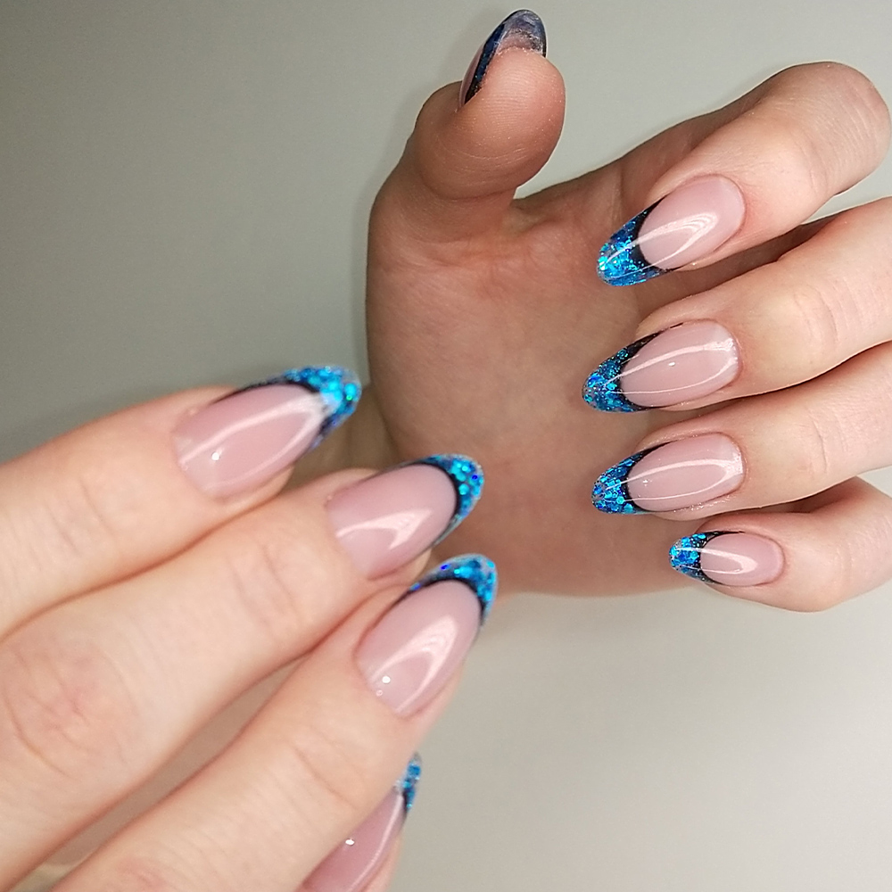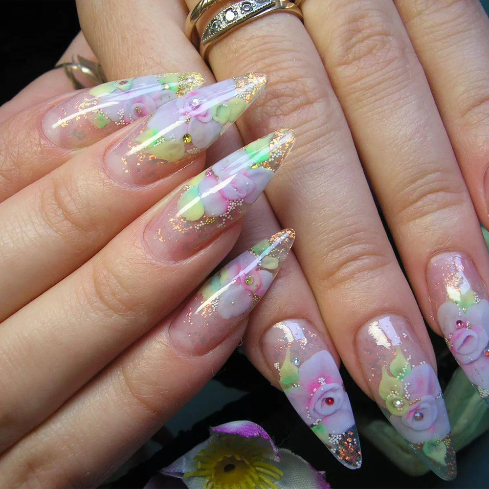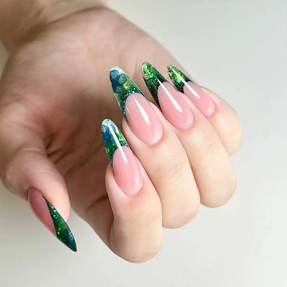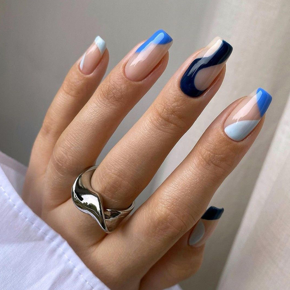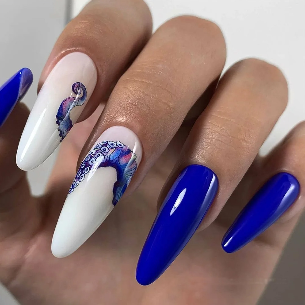 - Маникюр на длинные ногти с техникой «Аквариум».