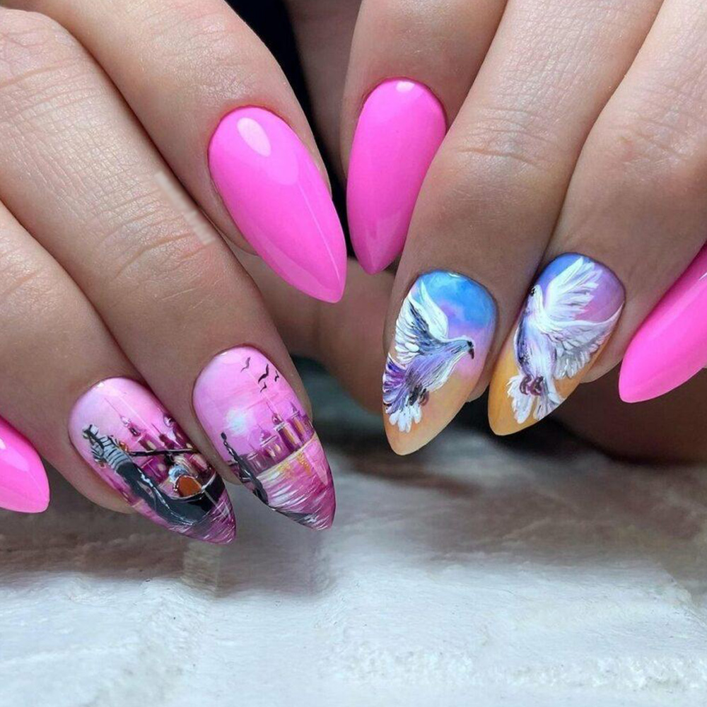 Выбранная форма ногтей не является определяющим фактором будущего дизайна маникюра. Разные идеи могут подходить нескольким формам одновременно. На каждой они будут смотреть по-своему красиво и не менее удачно. Опирайтесь на свои желания и опыт мастера, представляйте и визуализируйте идею на своих ноготках.