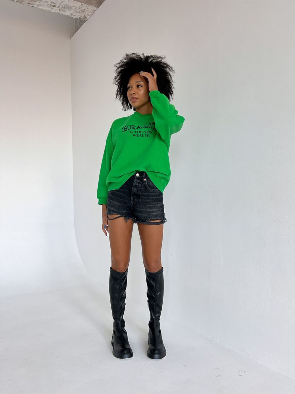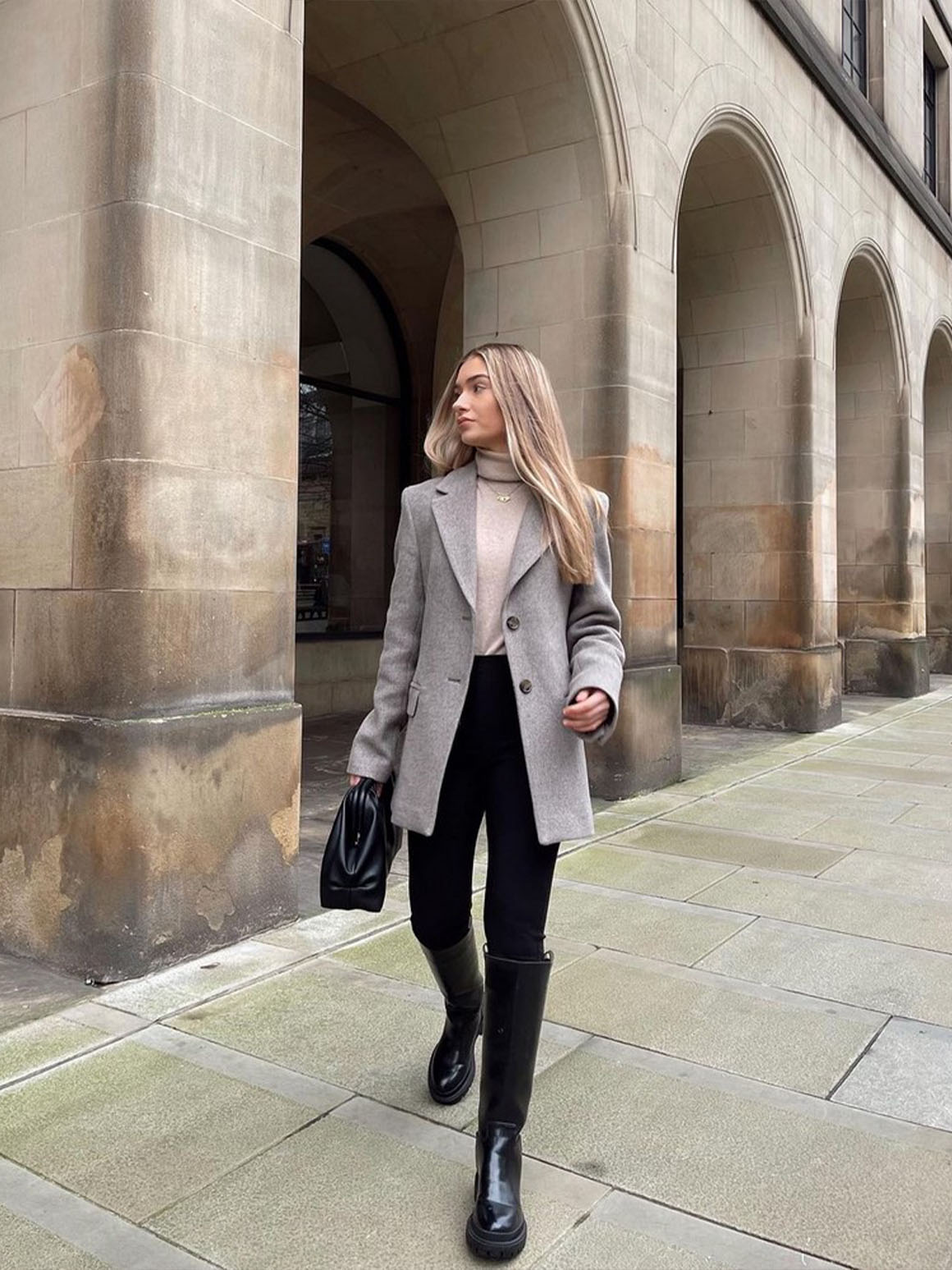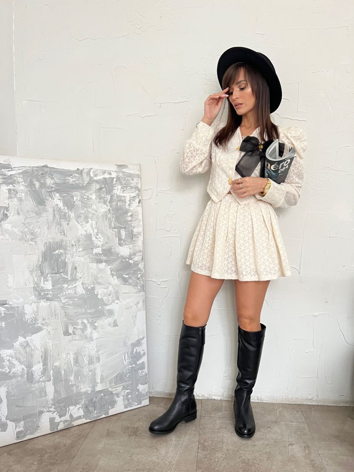 Подбирайте к ботфортам юбки с заниженной посадкой, объемные пиджаки или блейзеры. Ботфорты уместны для стиля спорт-шик, поэтому добавляйте их в аутфит с худи.