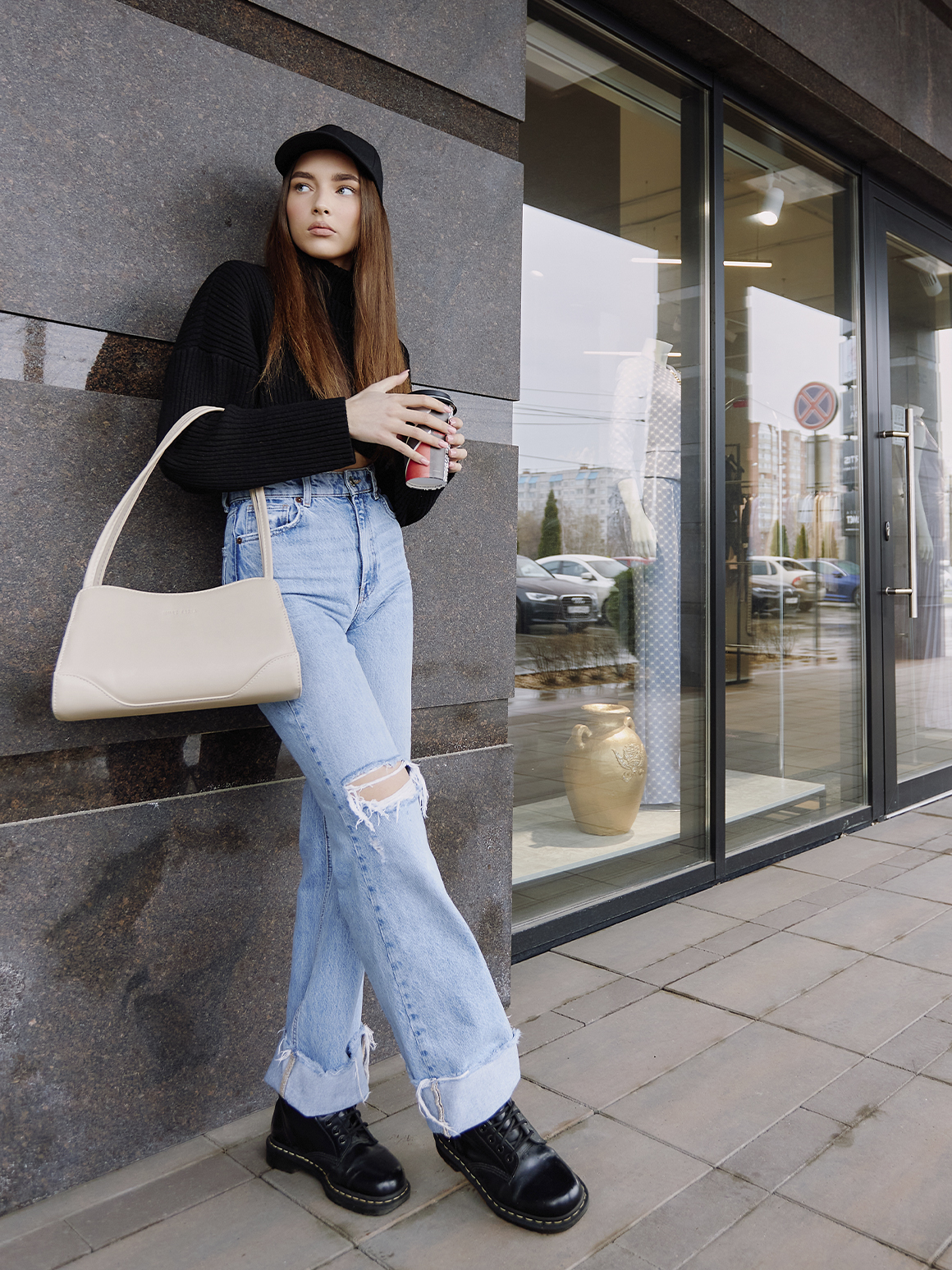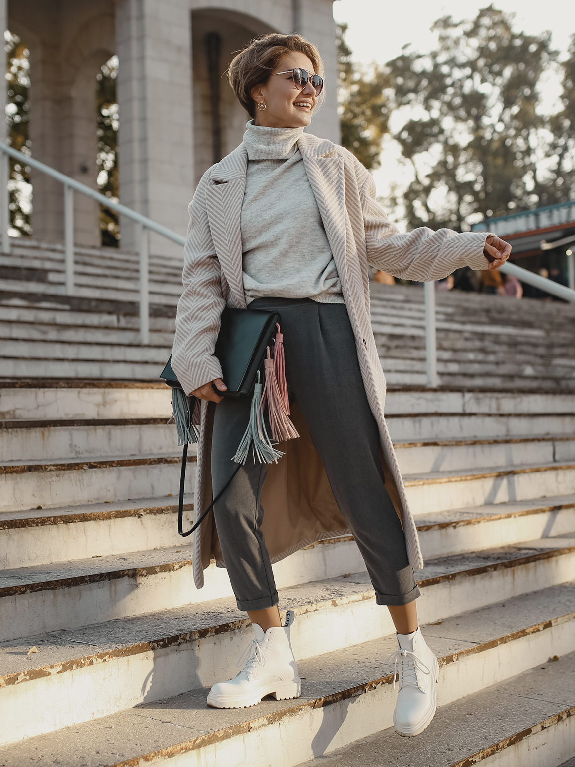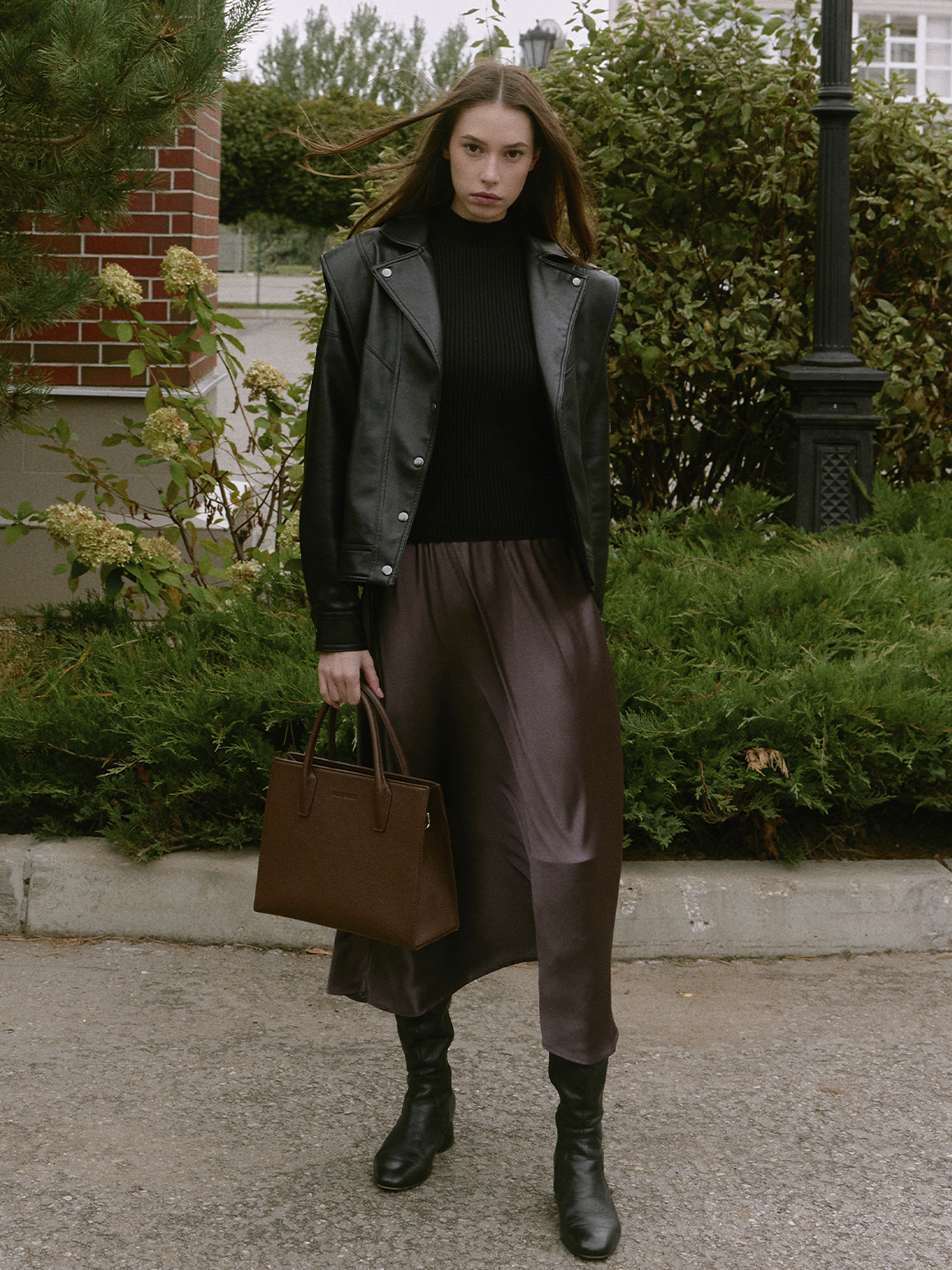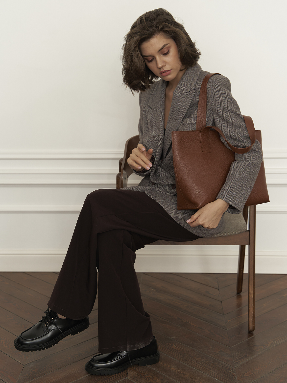 Свой осенний образ вы можете создать, вдохновившись луком южнокорейской актрисы и модели Чон Хо Ён, которая открыла показ осенне-зимней коллекции Louis Vuitton в этом году. Широкие брюки в сочетании с модной оверсайз-дубленкой в серо-коричневой гамме отлично передадут настроение осени. Завершить образ вы сможете ботинками с квадратным мысом и объемной хобо-сумкой ANNET в бежевом исполнении.