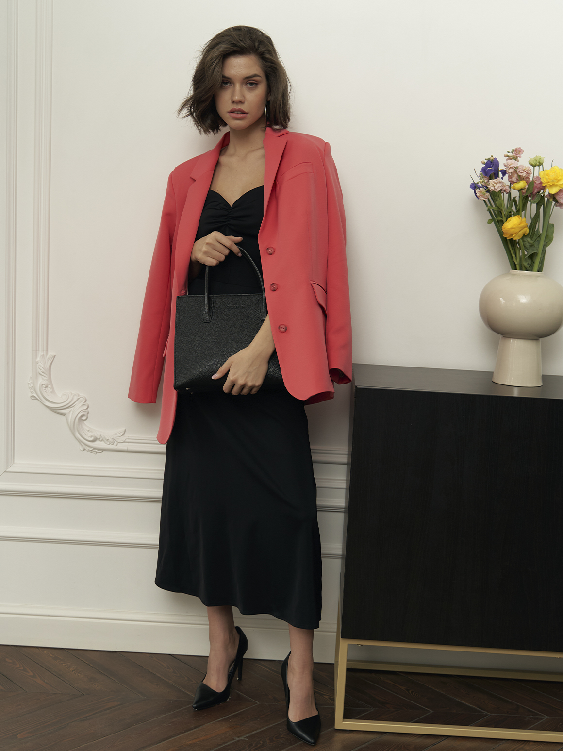 Создайте романтический образ для свиданий с лаконичными жокейскими сапогами! Примерьте свободное кашемировое платье и дополните лук актуальной моделью сумки-ведро. Другой вариант — туфли на скошенном каблуке в сочетании с миди-платьем из легкой ткани. Такой образ ждет завершения в виде сумки-багет или клатча в форме конверт.
