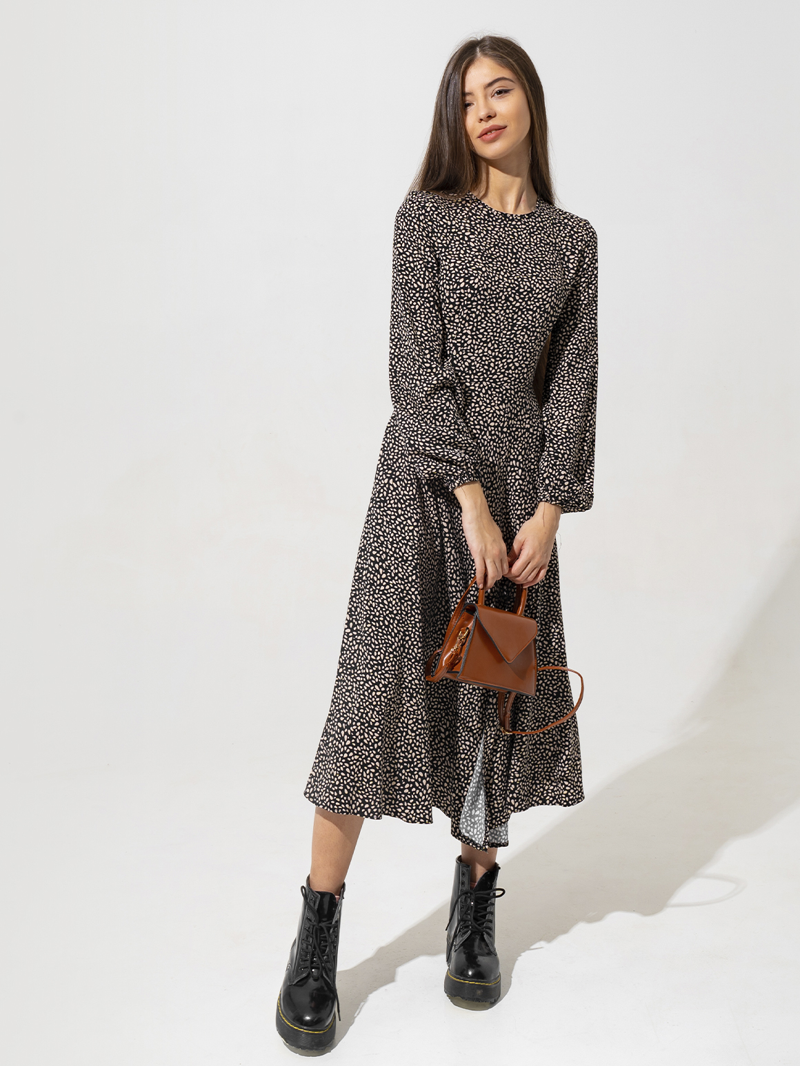 Модные сапожки с острым носиком можно применить и в деловом образе. Как у Кендалл Дженнер, например, с облегающим платьем из денима. Вы можете в точности повторить ее лук, а можете поменять джинсовое платье на однотонную модель в черном или темно-синем варианте длины миди. Завершить образ поможет элегантная сумка AGNES.