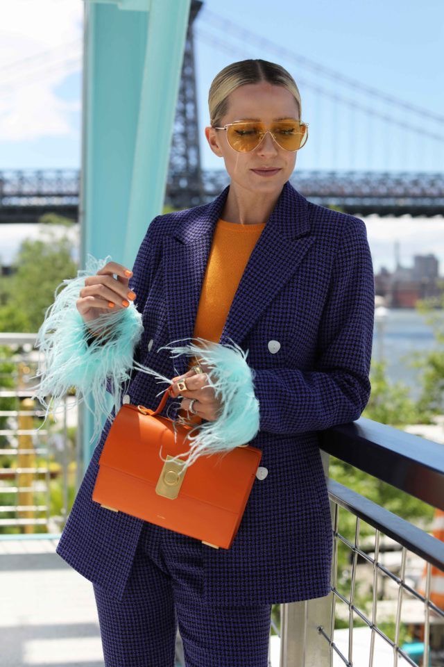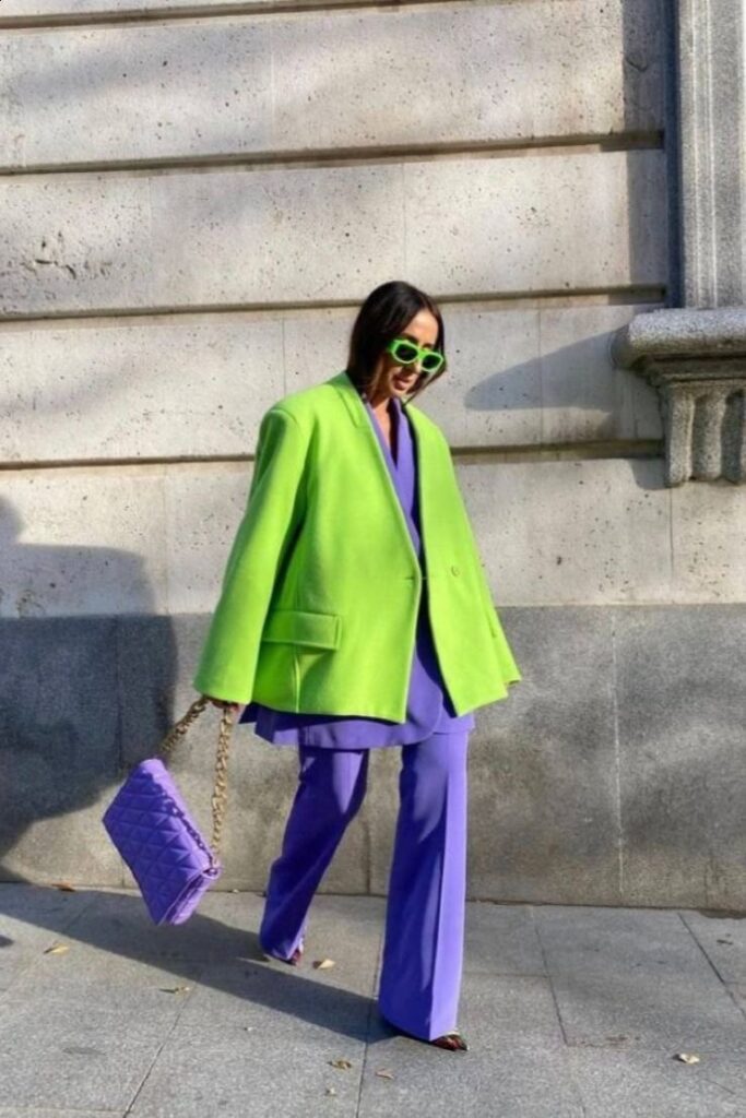Если вы сторонница минимализма и с осторожностью относитесь к новым цветовым решениям, то один из лучших вариантов разнообразить образ без риска – добавить аксессуар. Яркий акцент на сумке поможет грамотно распределить визуальную нагрузку и сделает вас более заметной.