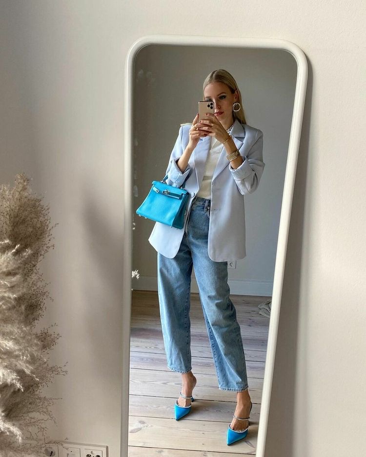 Голубая сумка – это универсальный вариант на лето, особенно для офисного костюма.