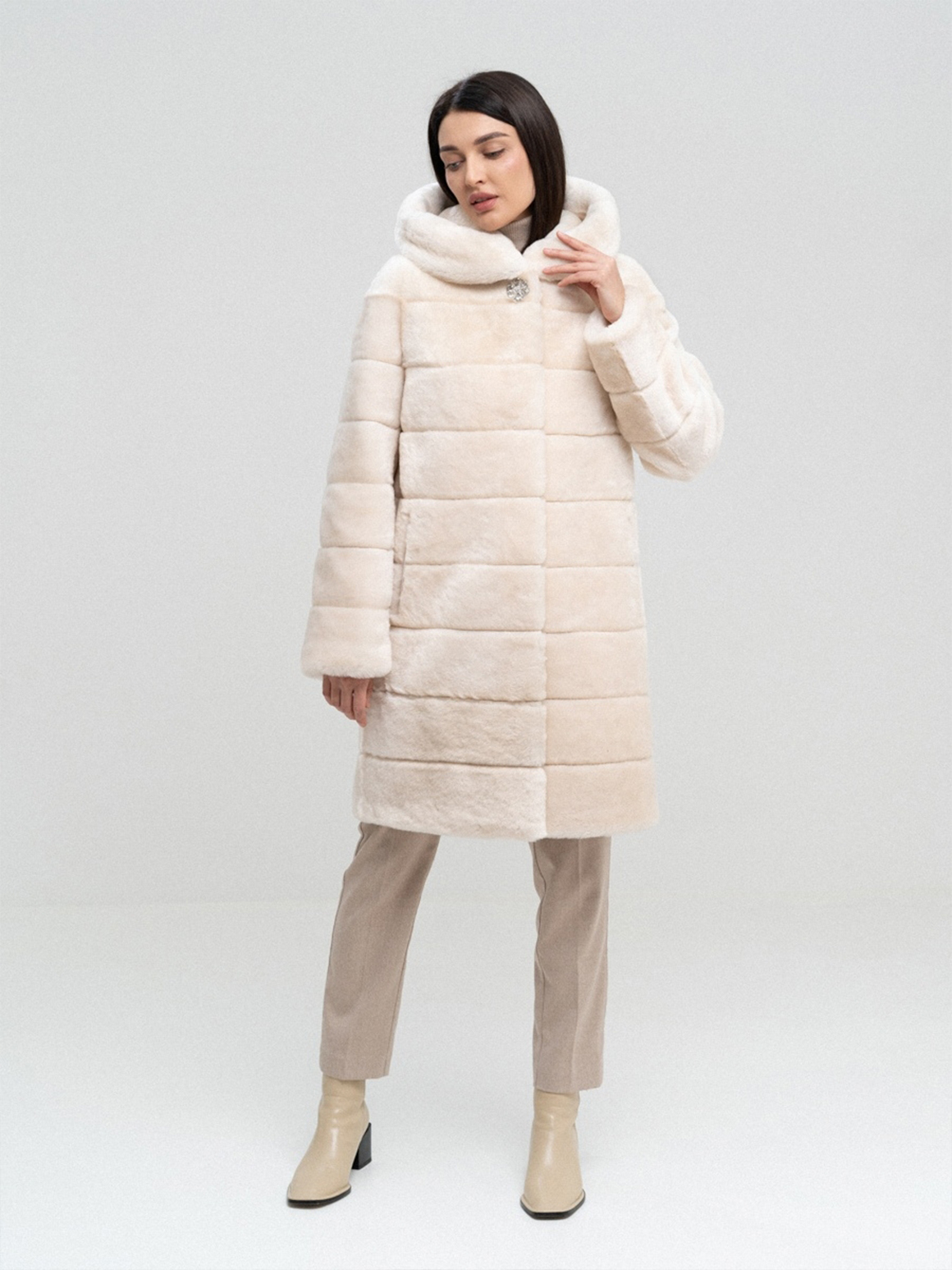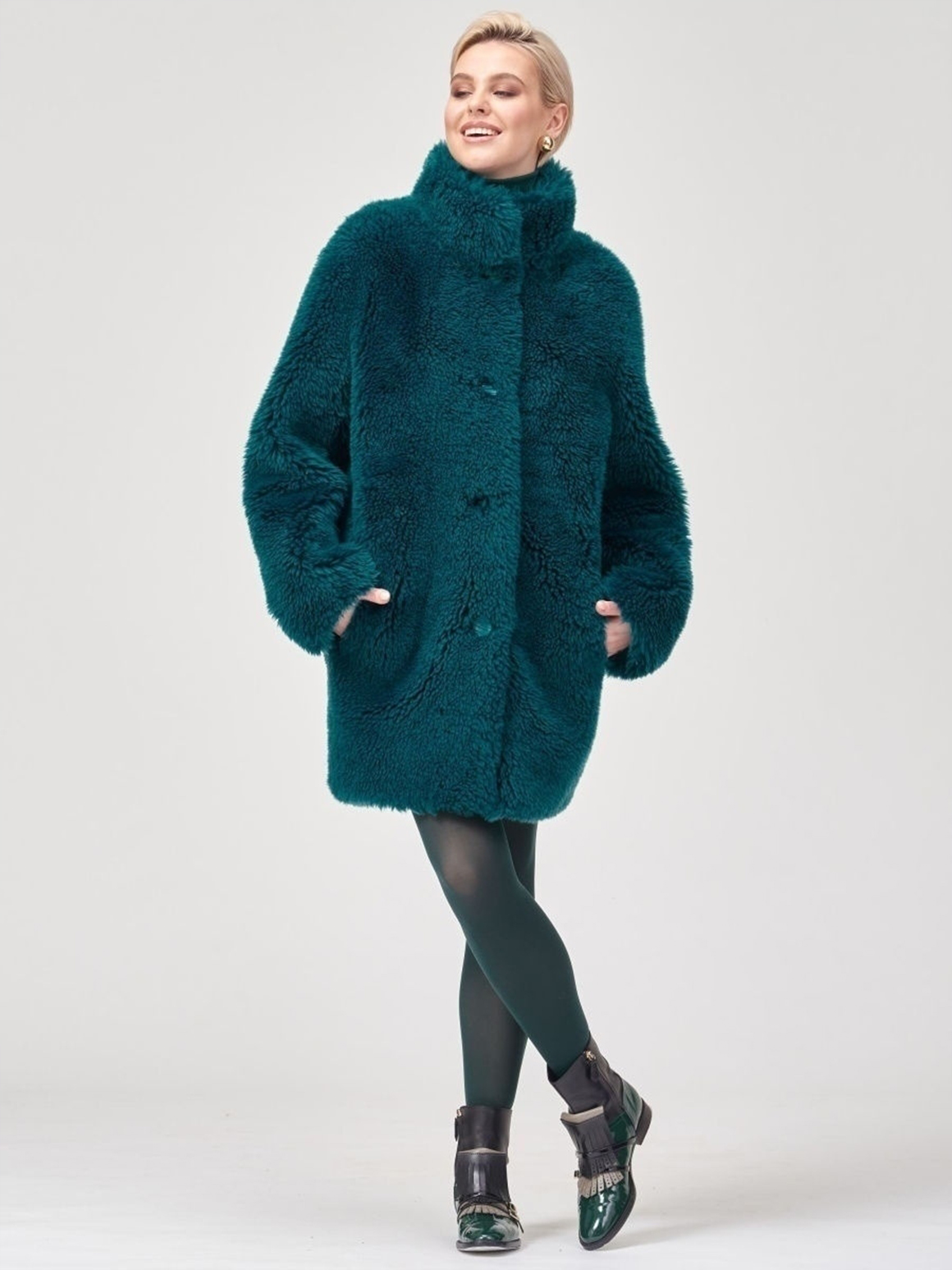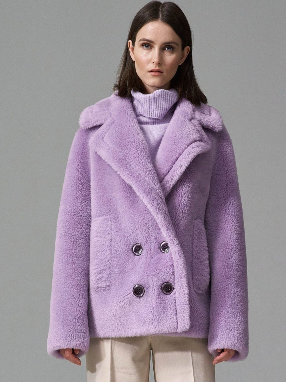 Есть еще модели из стриженого меха. Тенденция называется «искусственная натуральность»: это гуманный способ производства. Для них используют состриженную с животного шерсть. В 2022 году популярны шубки из овечьей, ангорской шерсти. Они современные, легкие и теплые.