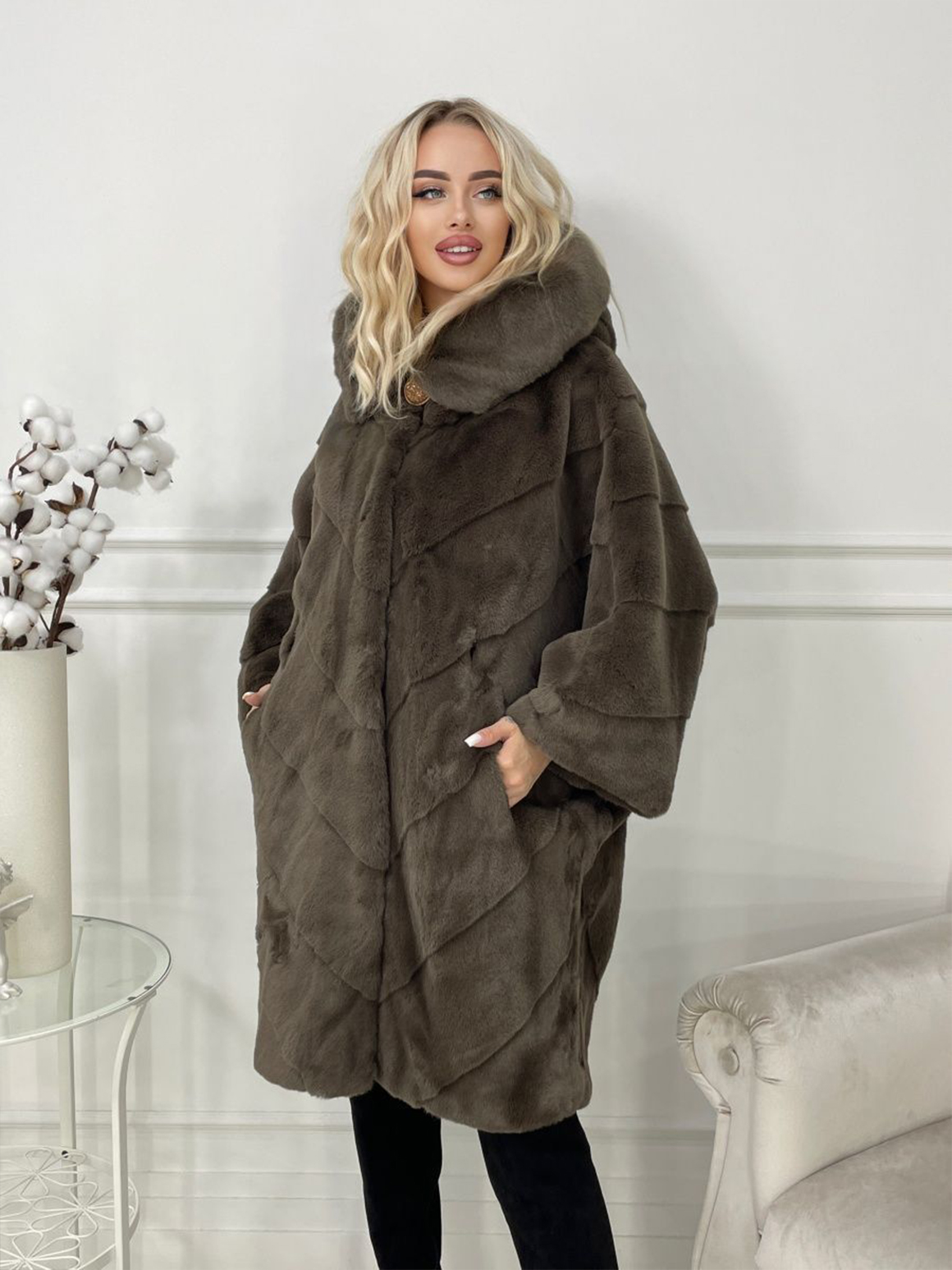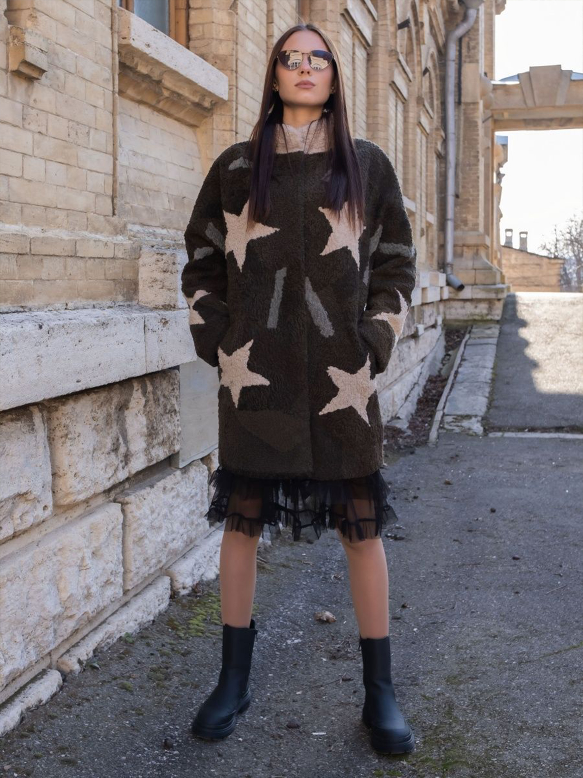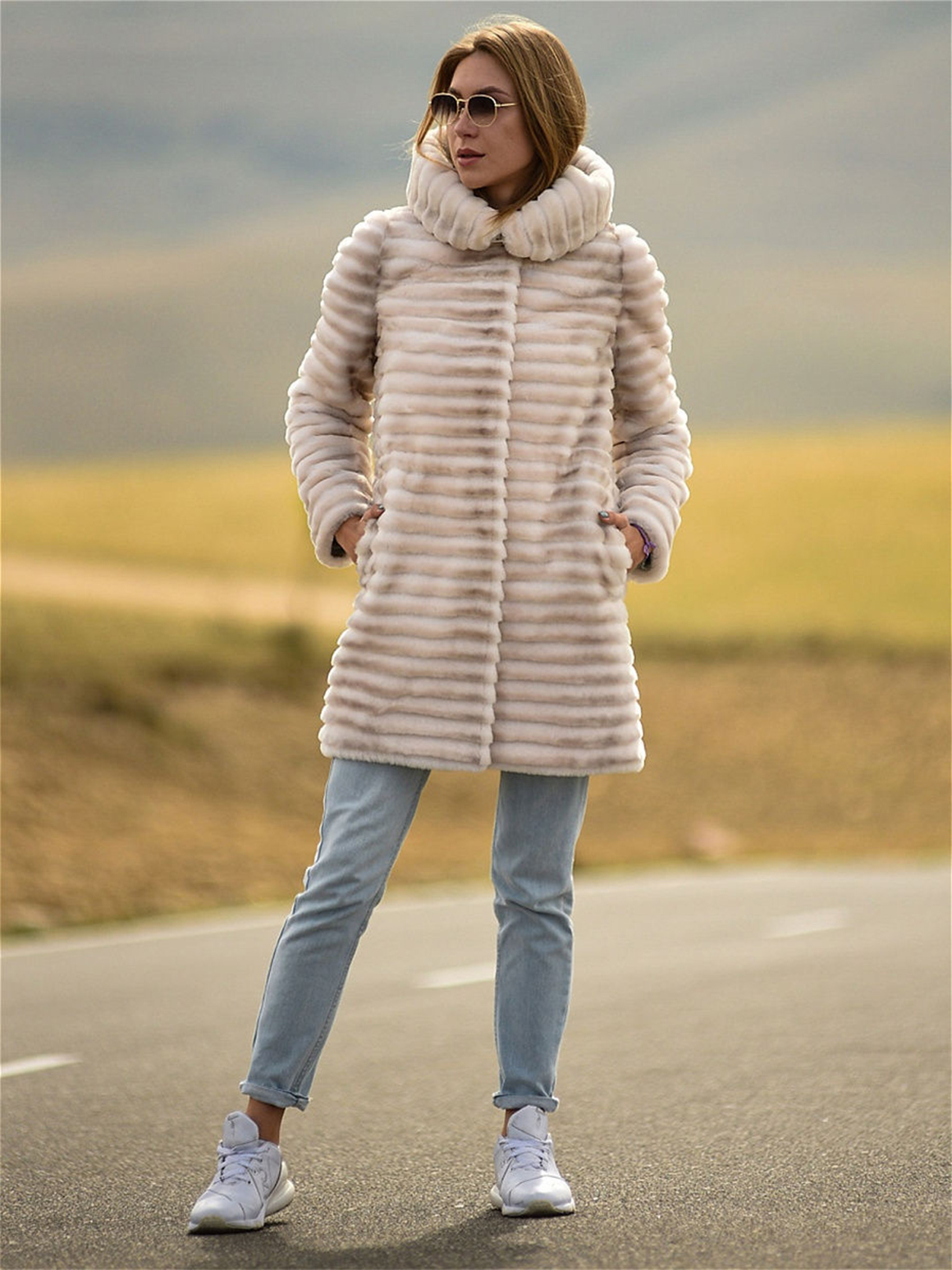 Есть еще модели из стриженого меха. Тенденция называется «искусственная натуральность»: это гуманный способ производства. Для них используют состриженную с животного шерсть. В 2022 году популярны шубки из овечьей, ангорской шерсти. Они современные, легкие и теплые.