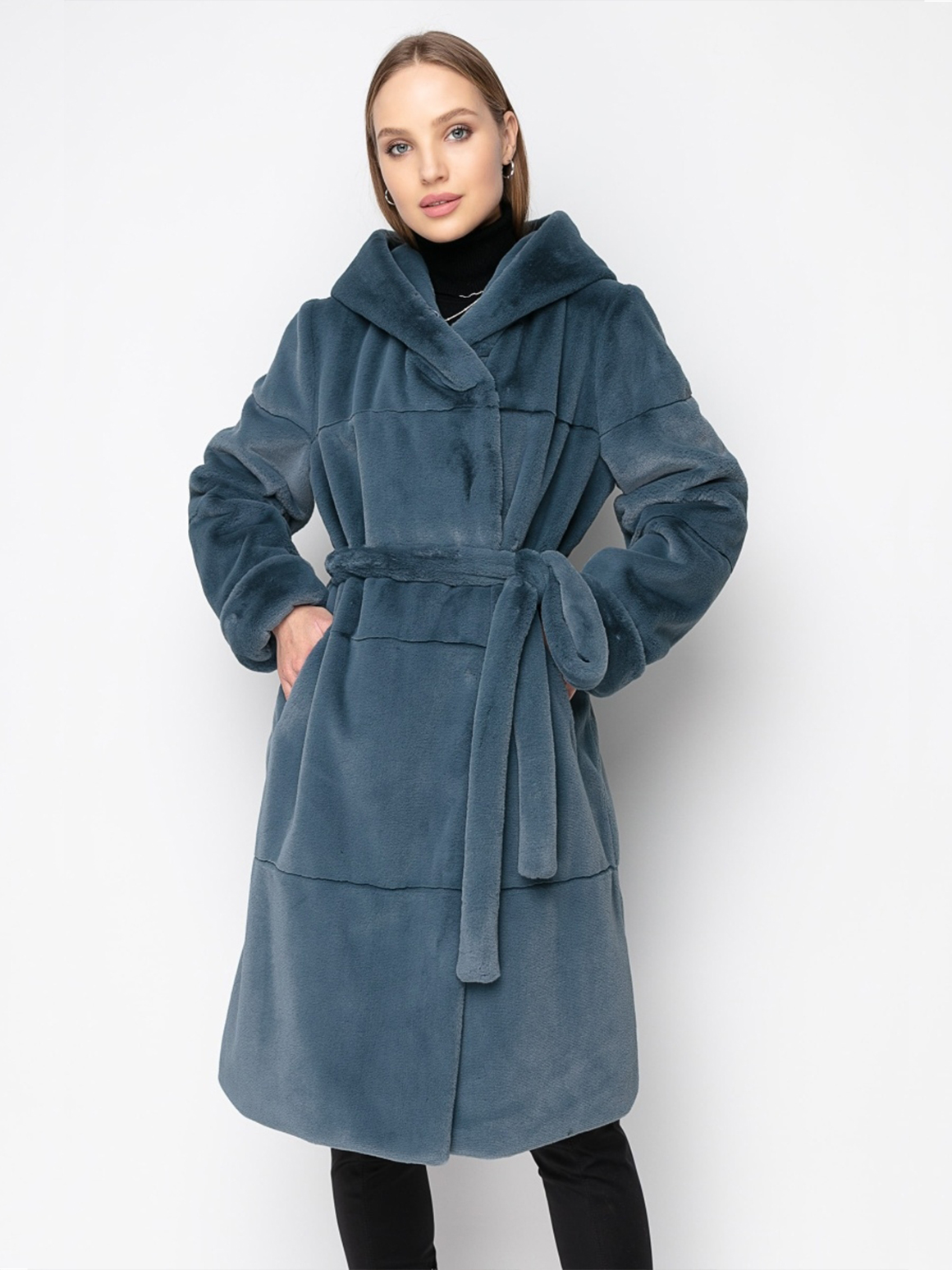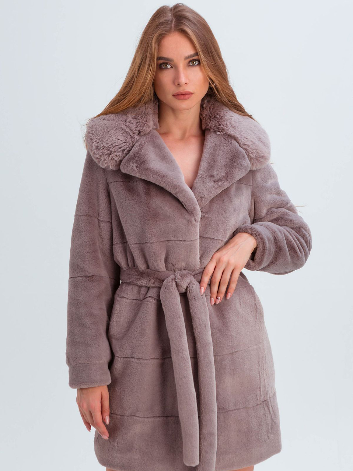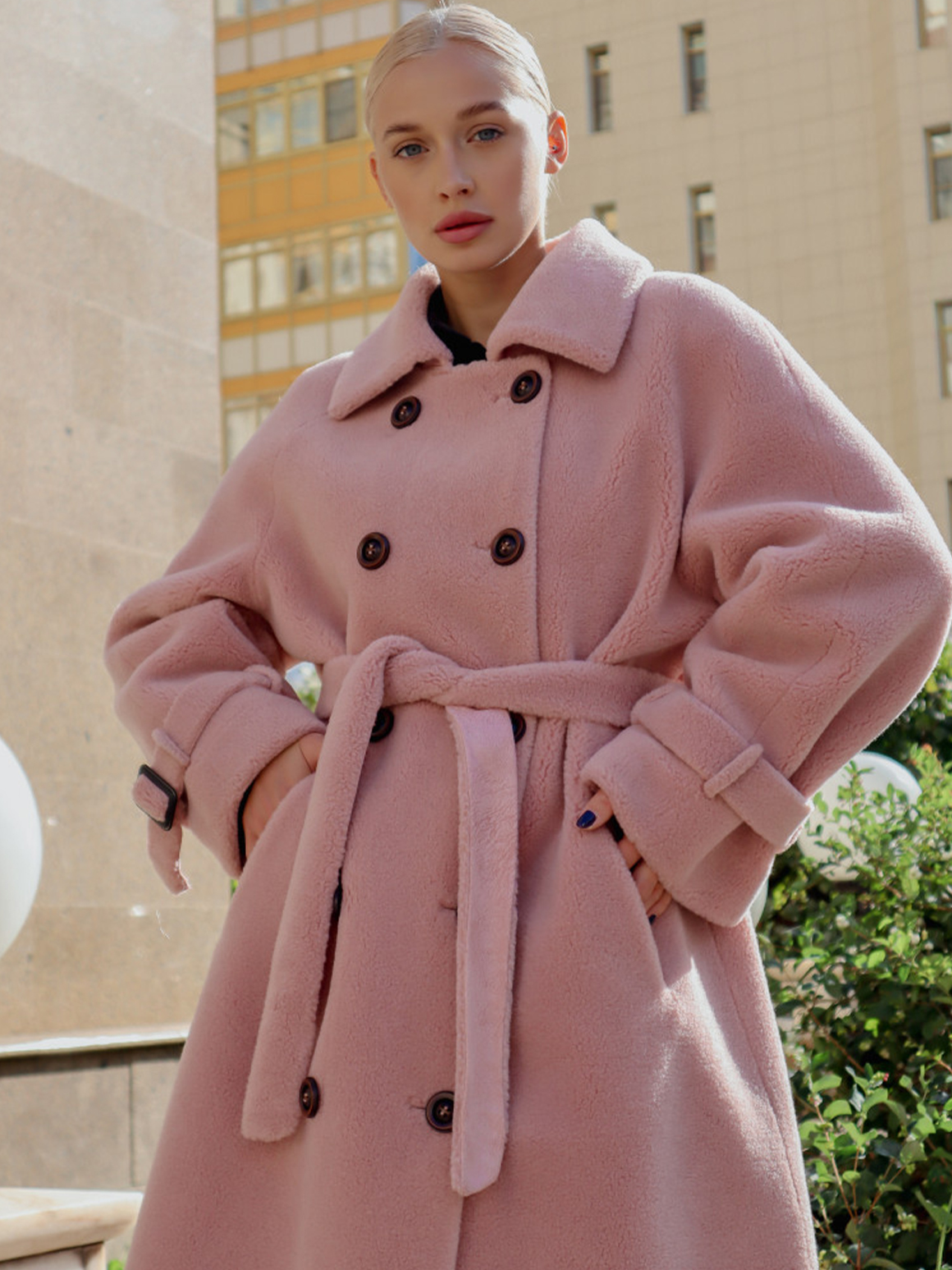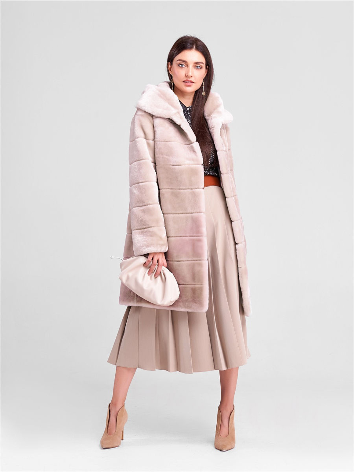 Шуба-халат нежного оттенка с поясом. Еще один несомненный хит сезона. Универсальная модель для походов на работу, деловых встреч.