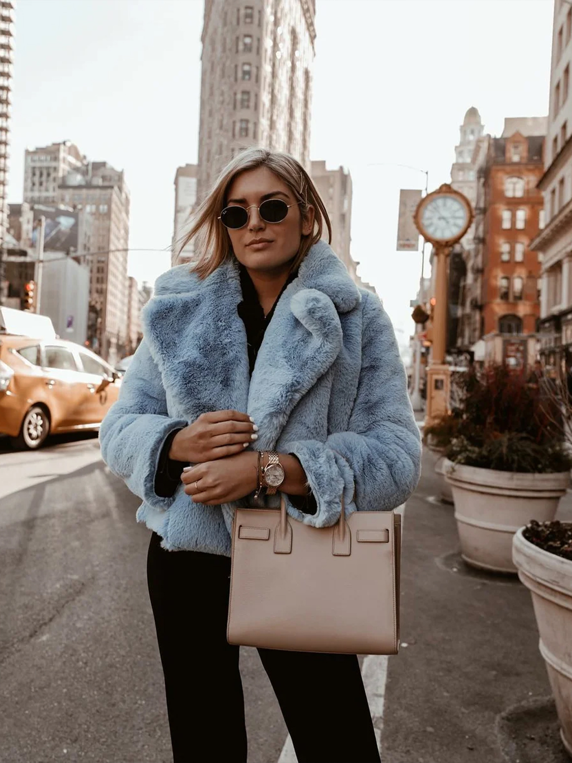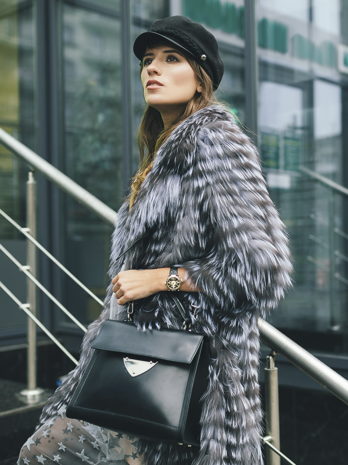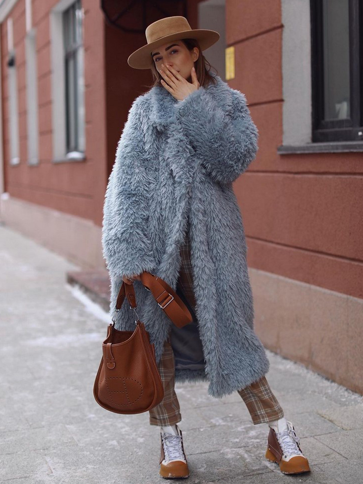 Здесь все зависит от того, какая это шуба. Например, норка ㅡ это неподдельная роскошь и благородный блеск. Сумка здесь должна быть под стать: тоут из натуральной кожи. Более демократичные меха ㅡ песец, мутон, каракуль ㅡ предполагают сумку среднего размера и любого другого фасона. Она может быть выполнена из экокожи, замши. Не стоит сильно утяжелять образ громоздкой сумкой.