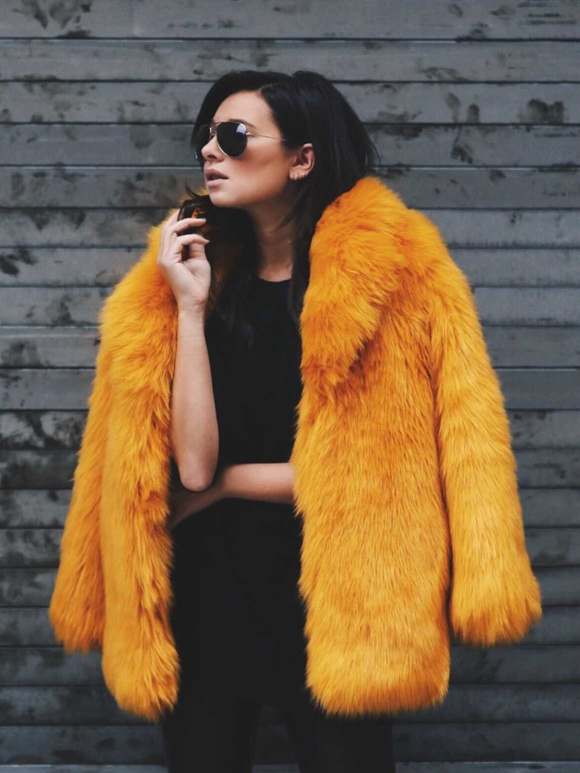 Серую зиму можно разнообразить яркой шубкой. Среди модных цветов сезона 2022/23 ㅡ красный, желтый, розовый, фиолетовый, оранжевый, зеленый, темно-синий. Если выбираете яркую верхнюю одежду, то вся остальная должна быть однотонной. Модная цветная вещь в данном случае ㅡ яркий акцент.