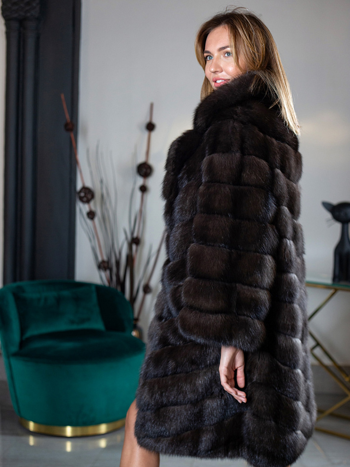 Пример комбинированной шубы из разных видов меха. Короткий и длинный ворс здесь хорошо сочетаются между собой.