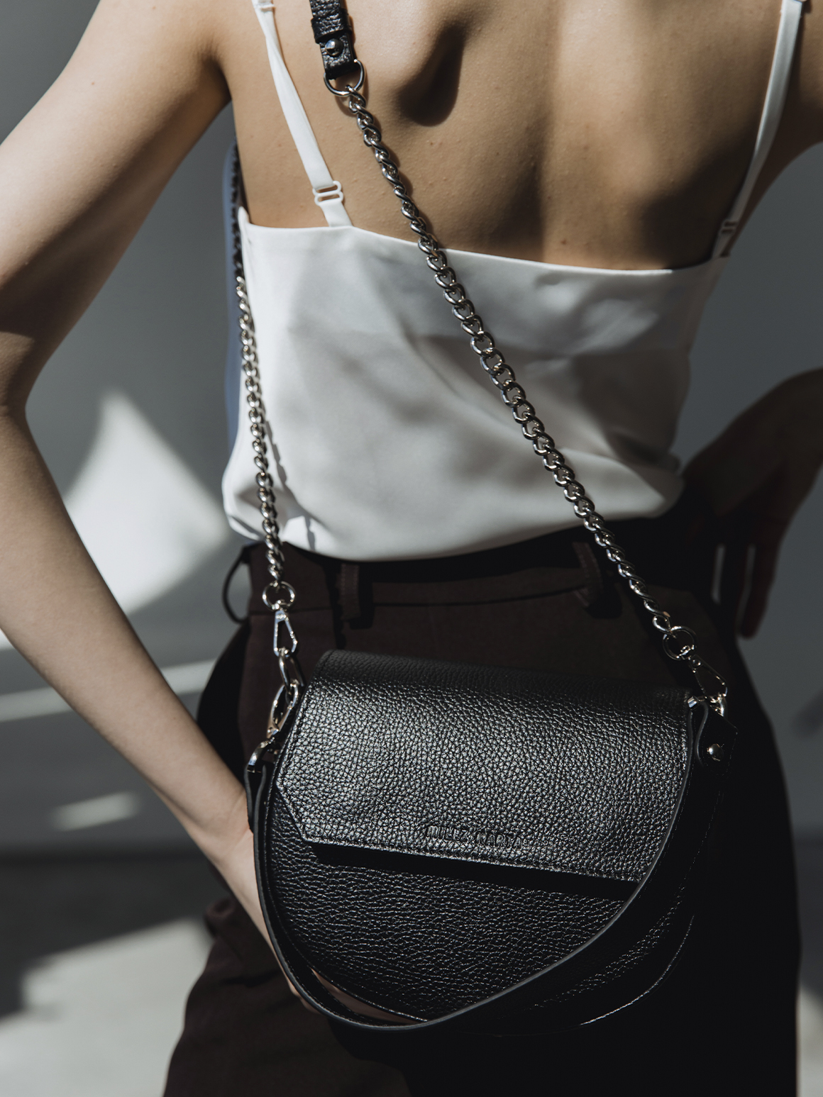 Осенью и зимой лучше всего смотрятся кожаные сумки. Они хорошо сочетаются с теплой верхней одеждой, защитят вещи от влаги. Кожа, особенно натуральная, ㅡ устойчивый долговечный материал. Такие аксессуары останутся в моде и в следующем сезоне. Для работы можно выбрать сдержанный тоут или вместительный шоппер. На вечеринку возьмите клатч или модную мини-сумочку.
