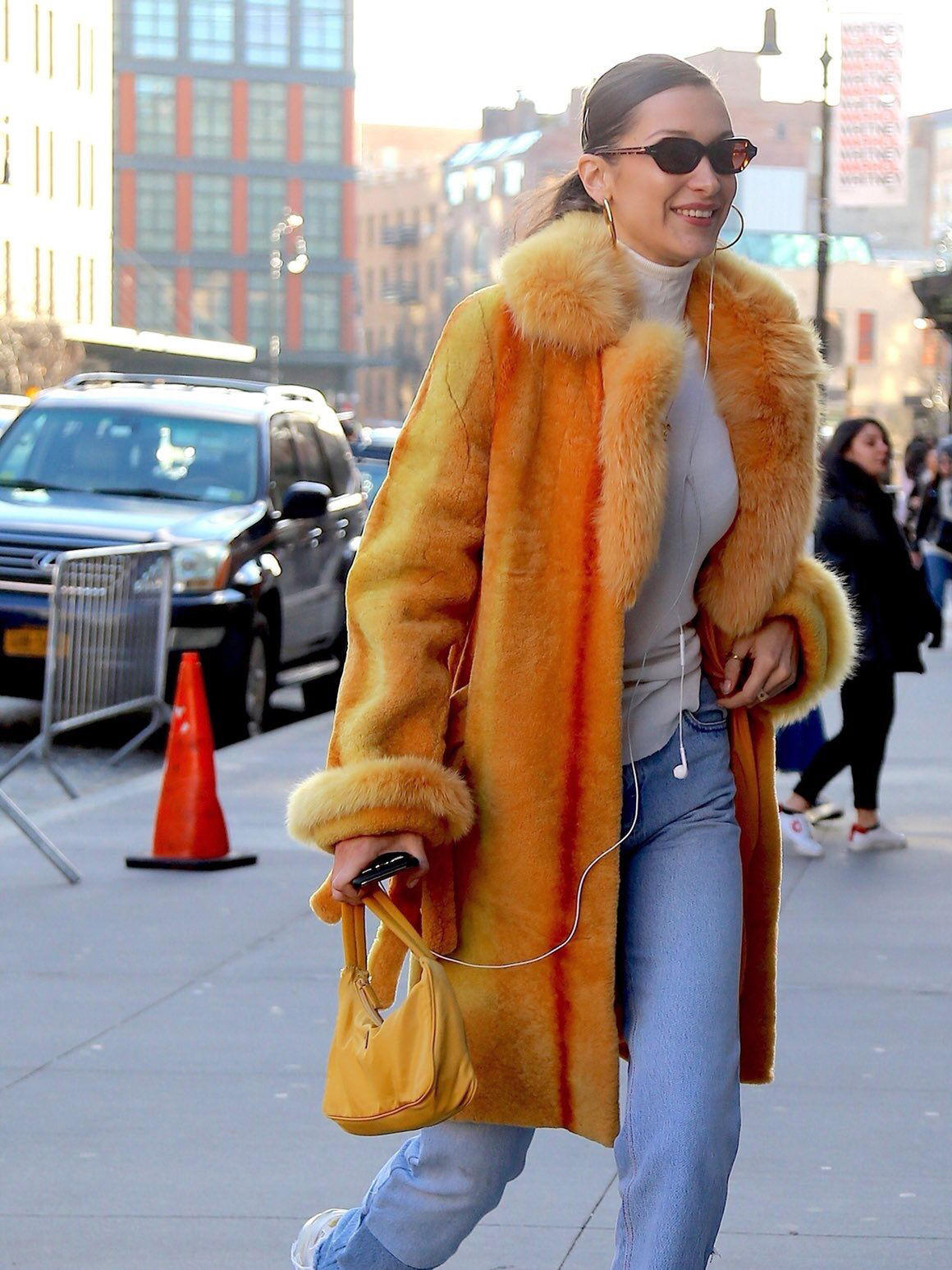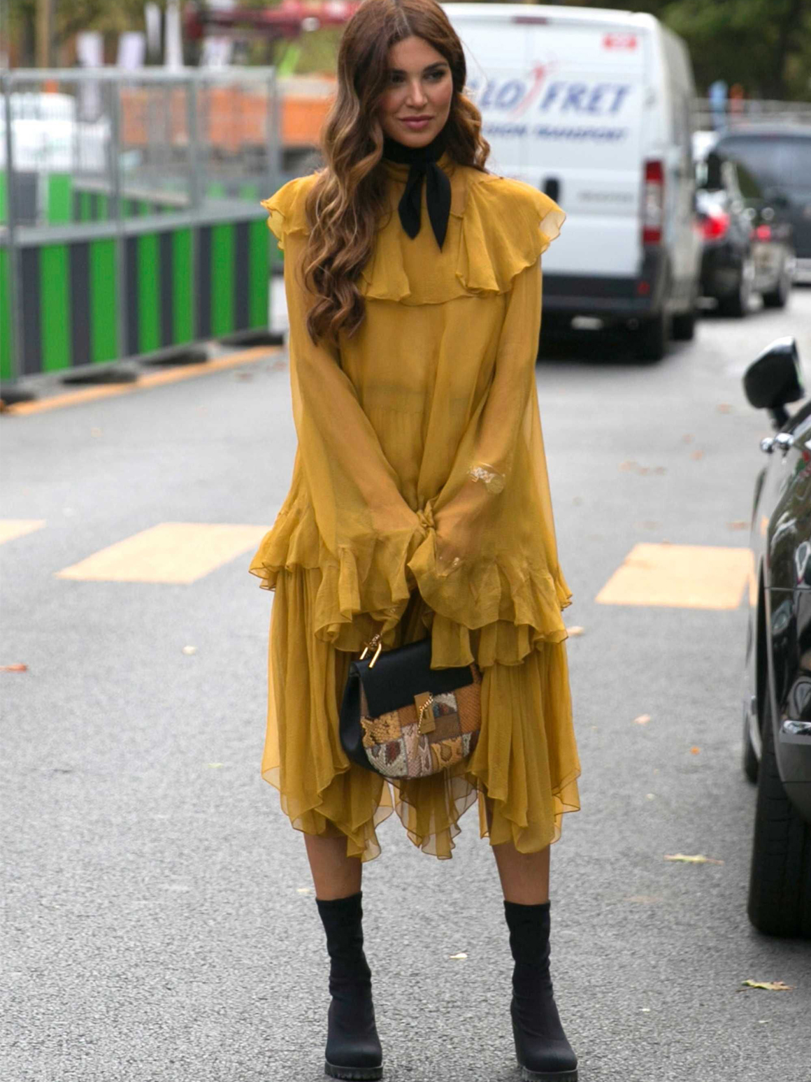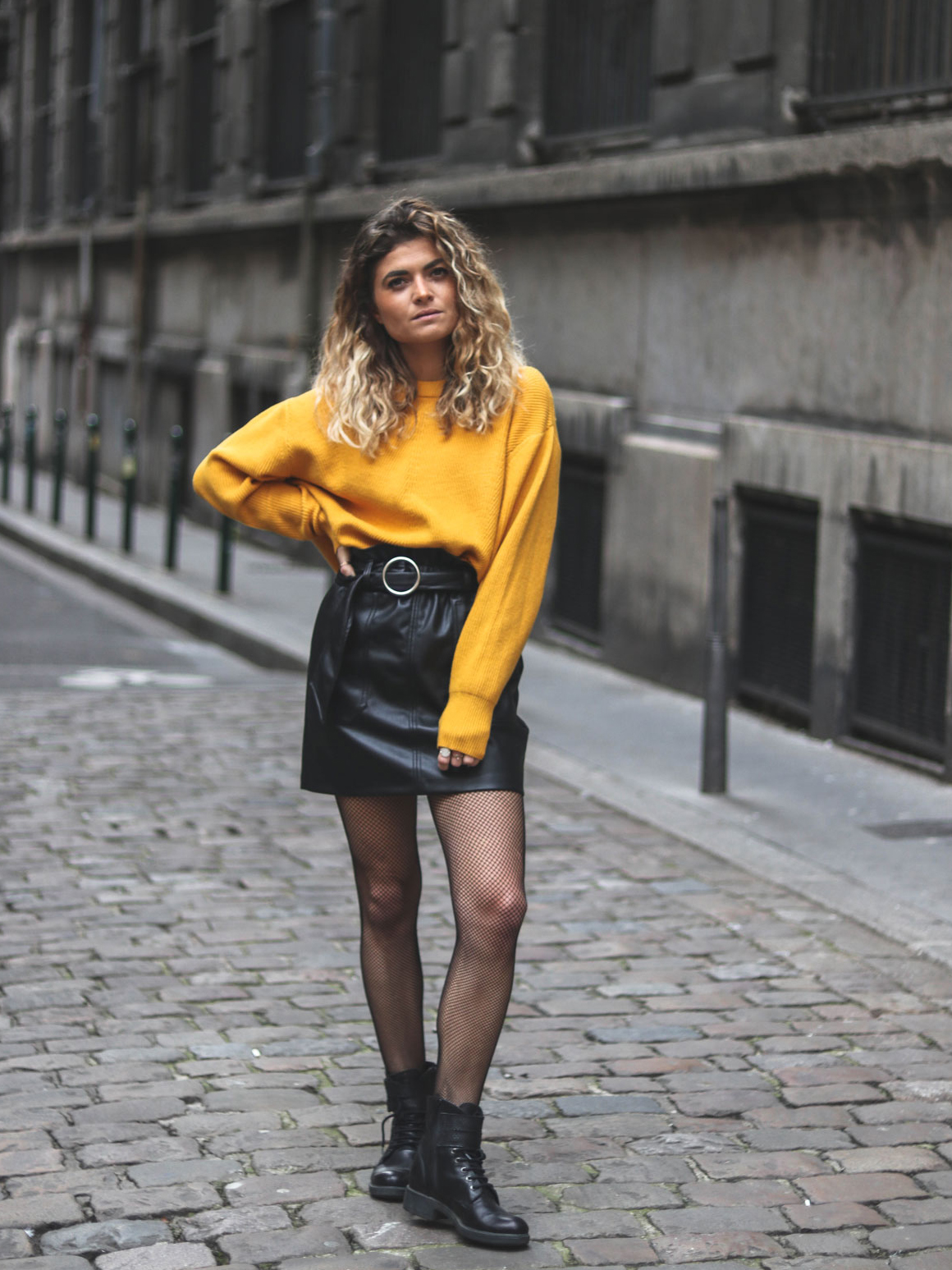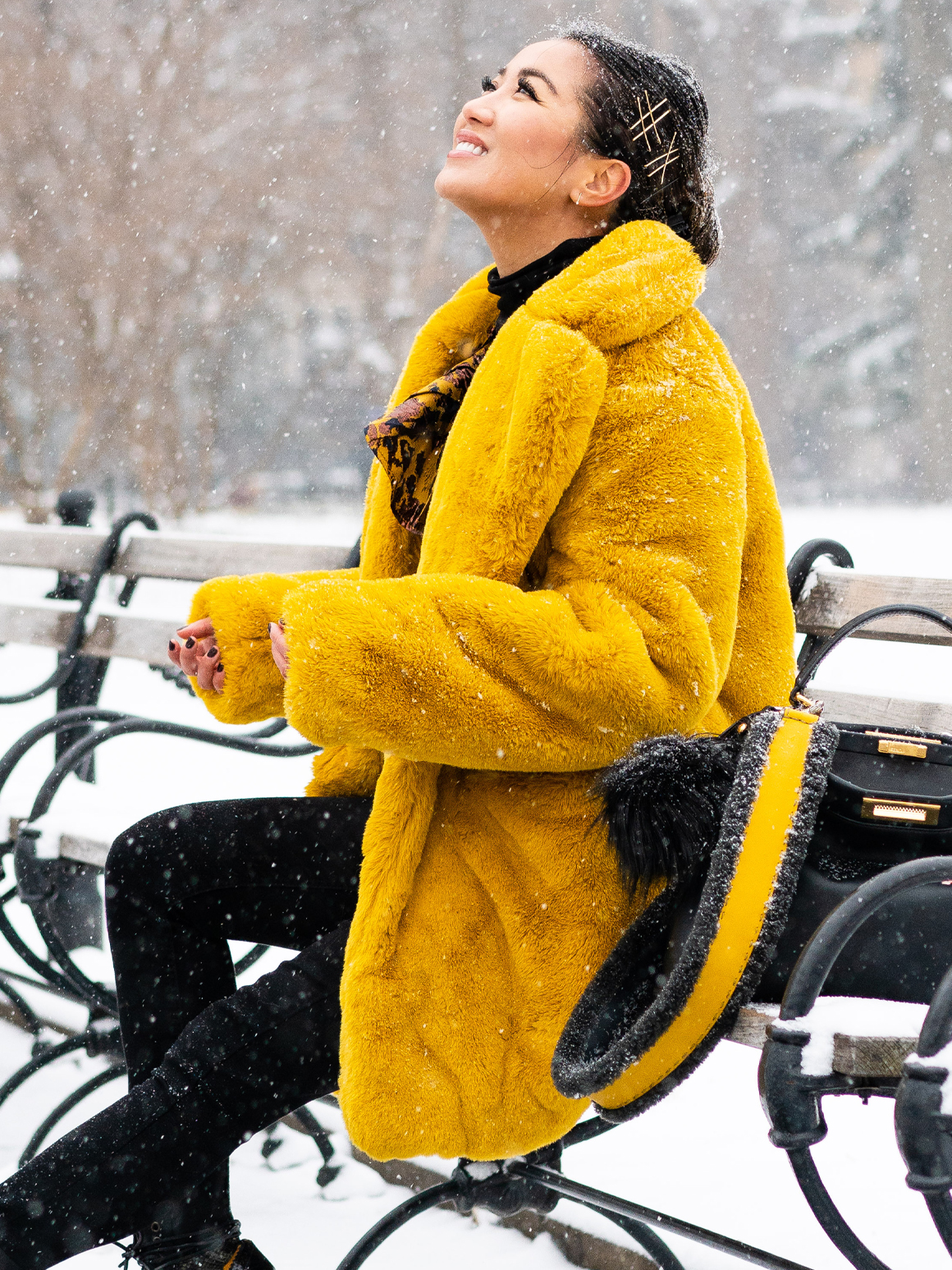 Я обожаю желтое пальто в сочетании с черной сумкой и сапоги на каблуке)
