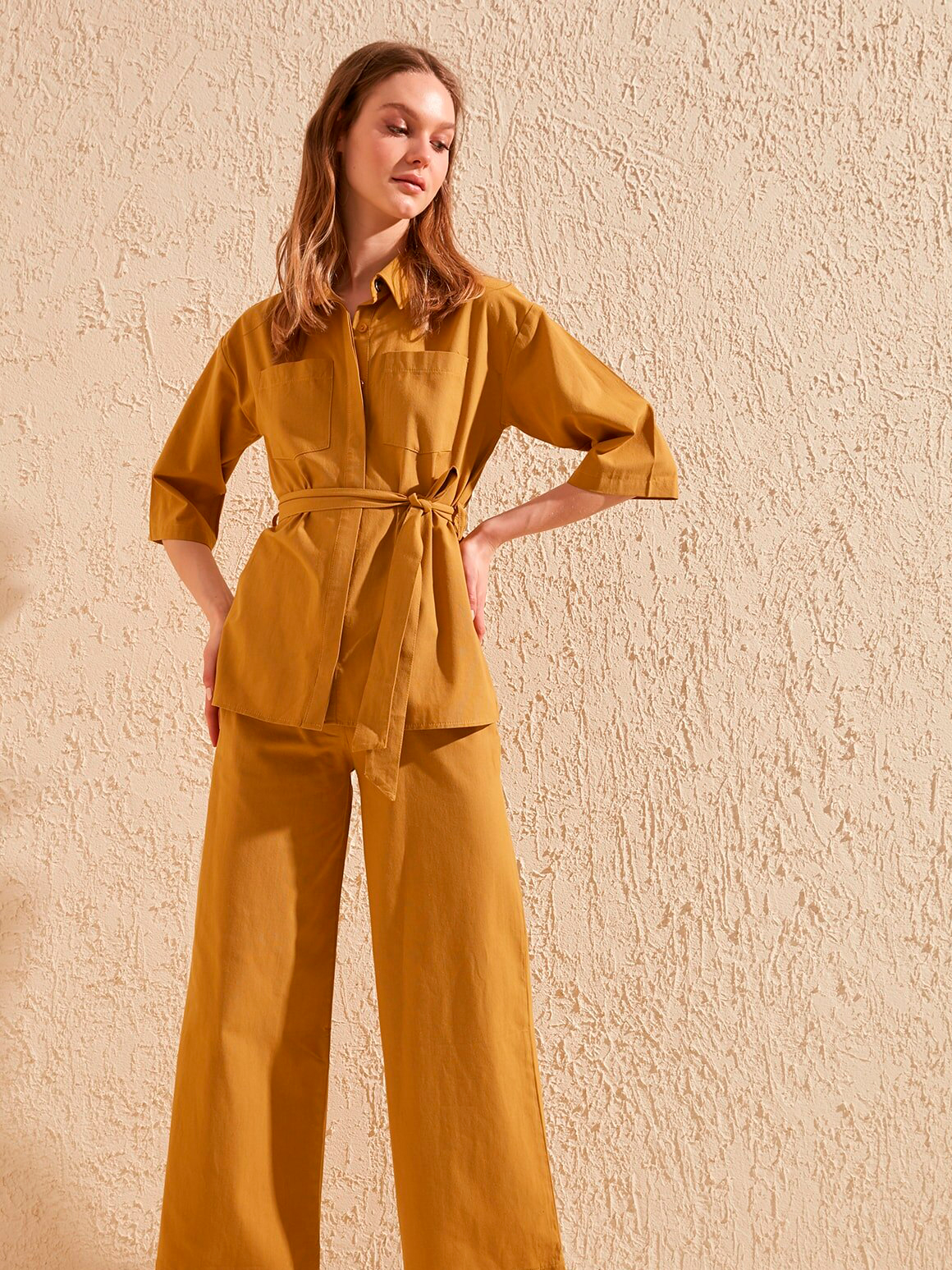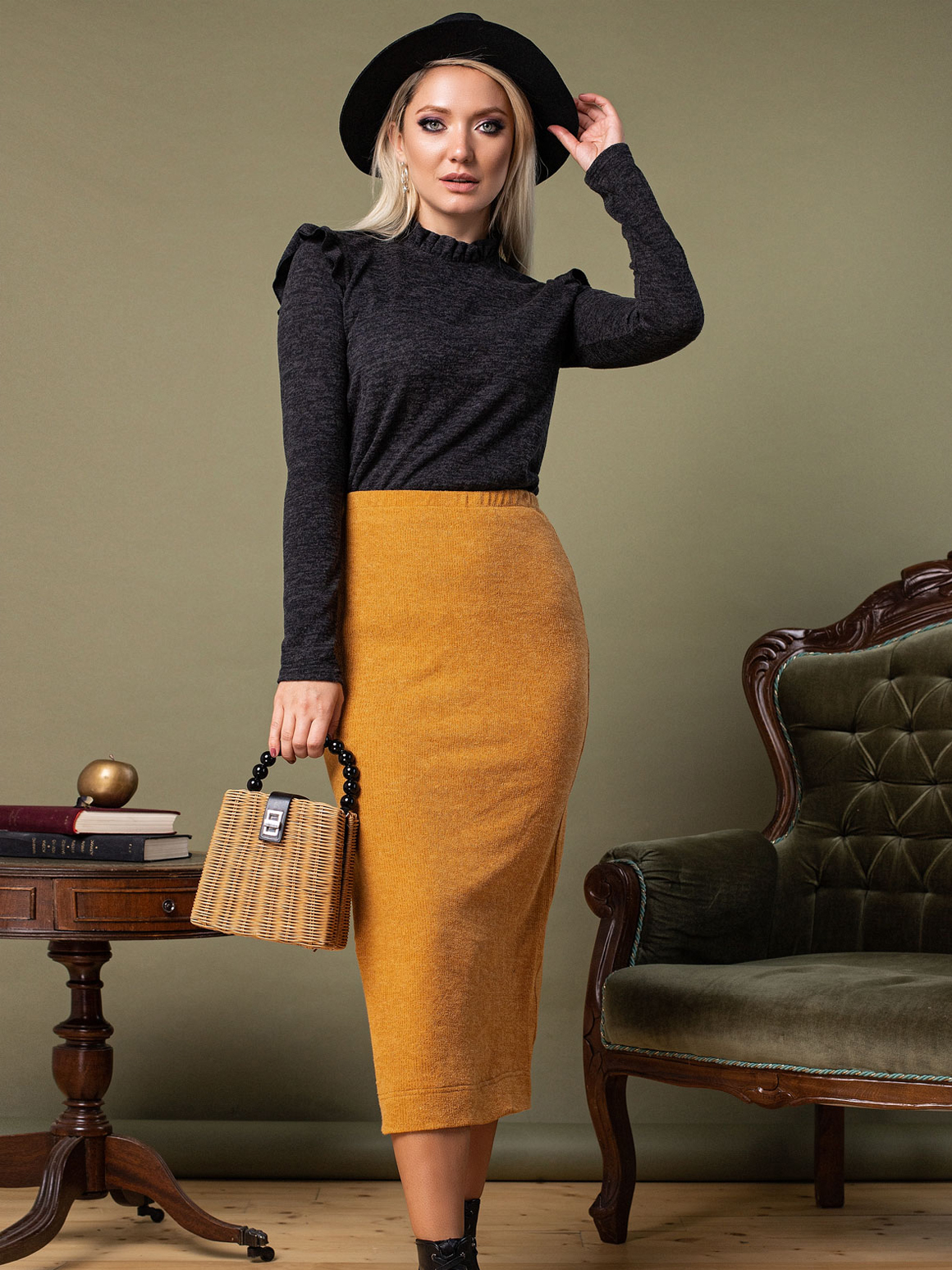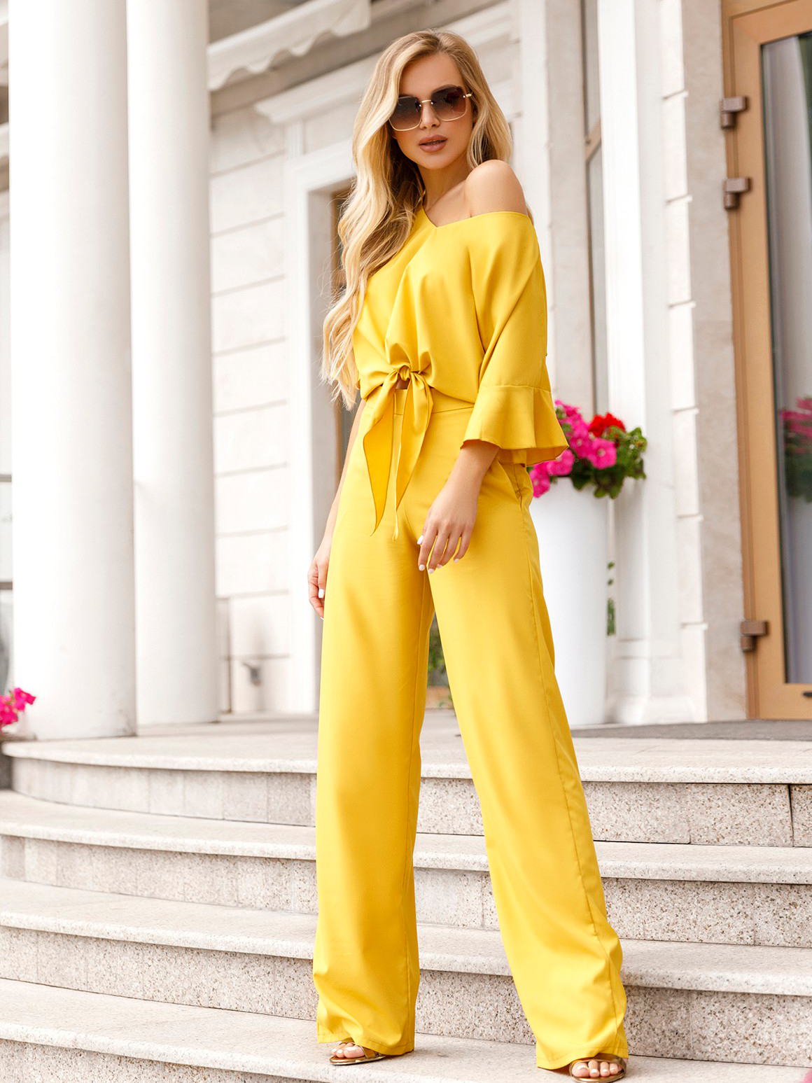 Из вещей этих тонов можно составить великолепный офисный комплект. Образ получится строгий, но одновременно благородный и женственный. Хорошо подойдут для этой цели сдержанные тона: песочный, соломенный, горчичный. Более яркие оттенки хороши для неформальных встреч. В таком наряде можно пойти на вечеринку сразу после работы, если нет времени переодеться. Добавьте бижутерию и туфли на высоком каблуке ㅡ и праздничный образ готов.