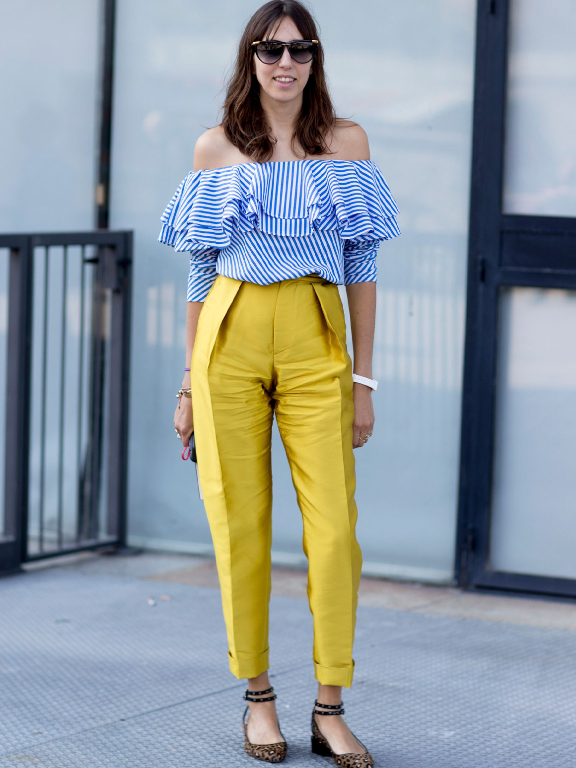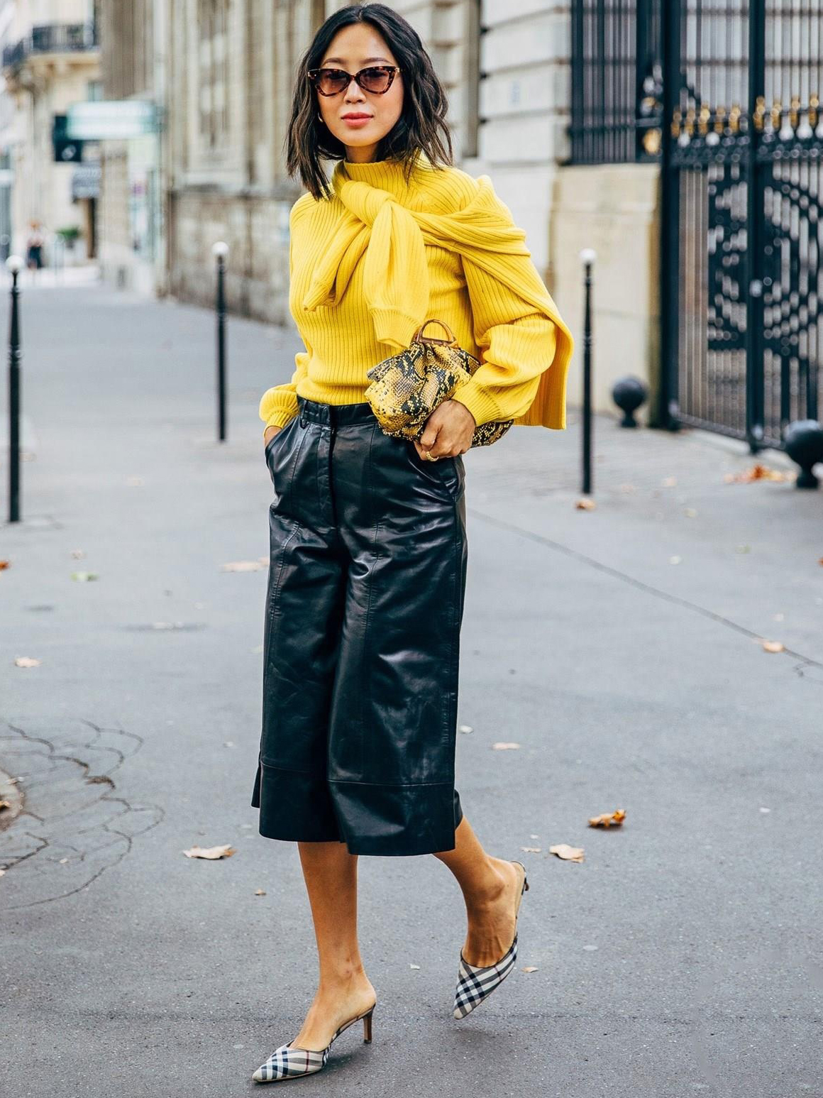 Вот несколько актуальных способов сочетания желтых туфель на каблуке: