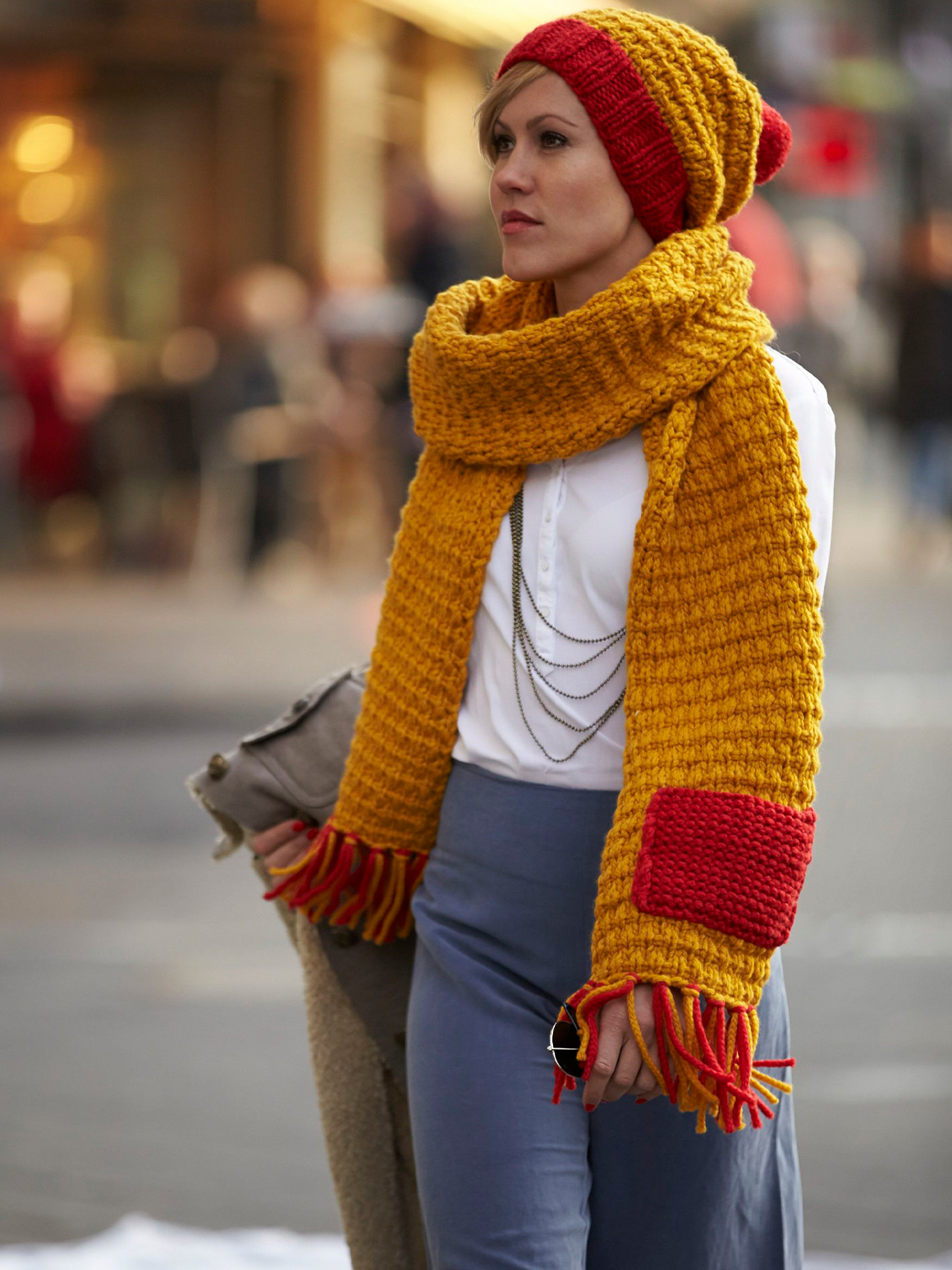 Мне нравятся желтые аксесуары-шарф, берет, перчатки