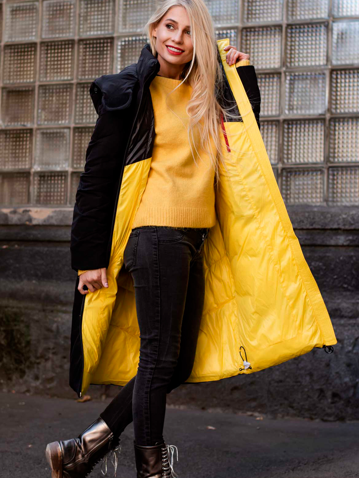 - Куртка. Зимой яркая желтая куртка выглядит невероятно стильно и позитивно. К пуховику выбирайте ботинки на платформе или теплые кроссовки. Модели из плащевой ткани можно носить с сапогами на каблуке или без него. Нетривиально выглядит желтая куртка из денима. Ее можно носить с джинсами или белыми брюками. Если любите модные эксперименты ㅡ приобретите желтую кожаную курточку. Она прекрасно сочетается со всеми теми платьями и юбками, которые мы надеваем под черную или коричневую кожанку.