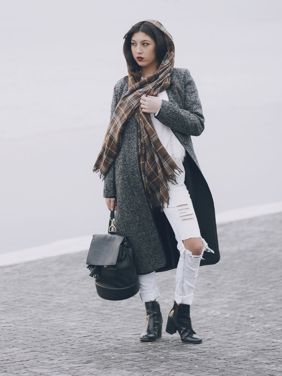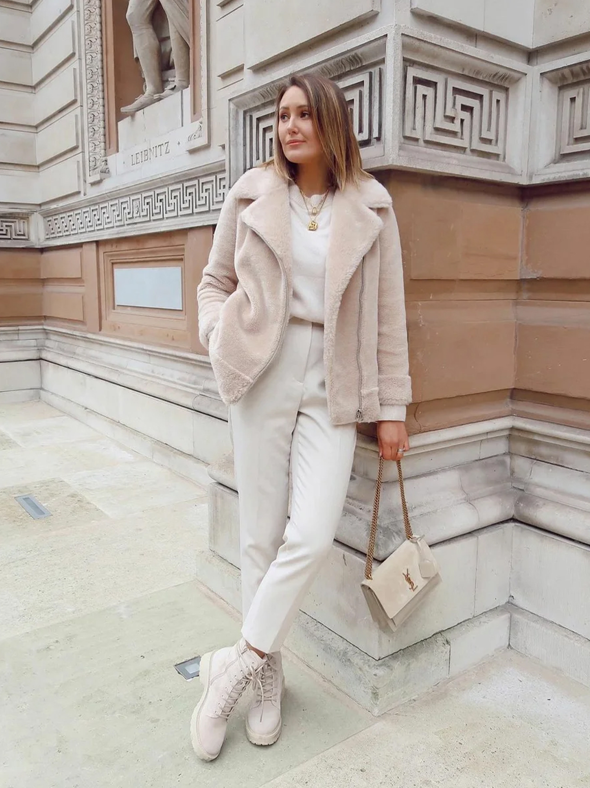 Зимние образы выглядят стильными, если в них не присутствует лишних деталей. Например, с широкими джинсами и простой водолазкой хорошо сочетаются такие сумки, как CHARLOTTE. Завершить лук можете ботинками с квадратным мысом в тон к аксессуару и укороченной курткой кофейного оттенка.
