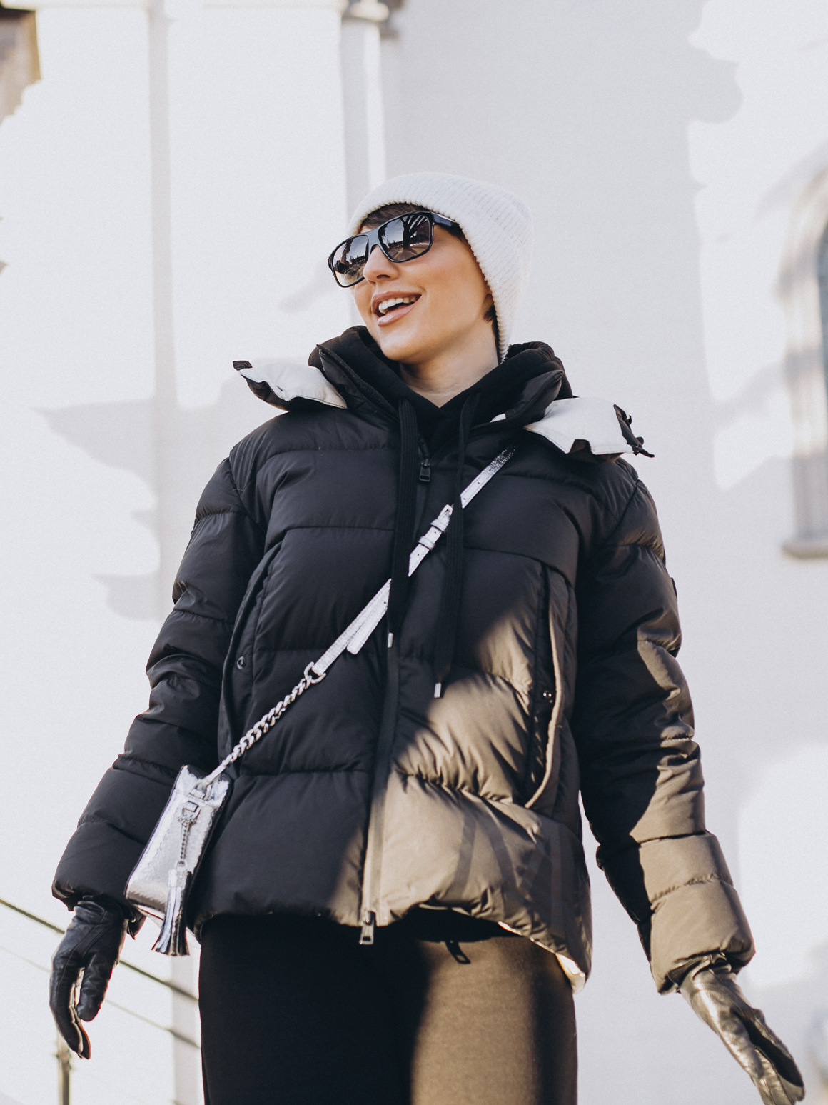 Утепленные бомберы — хит сезона. Даже на суровую зимушку есть парочка интересных бомберов, которая заинтересует модниц. К такому бомберу неплохо подойдет сумка в форме полумесяца или saddle bag. Такие изделия добавляют изюминку в аутфит.
