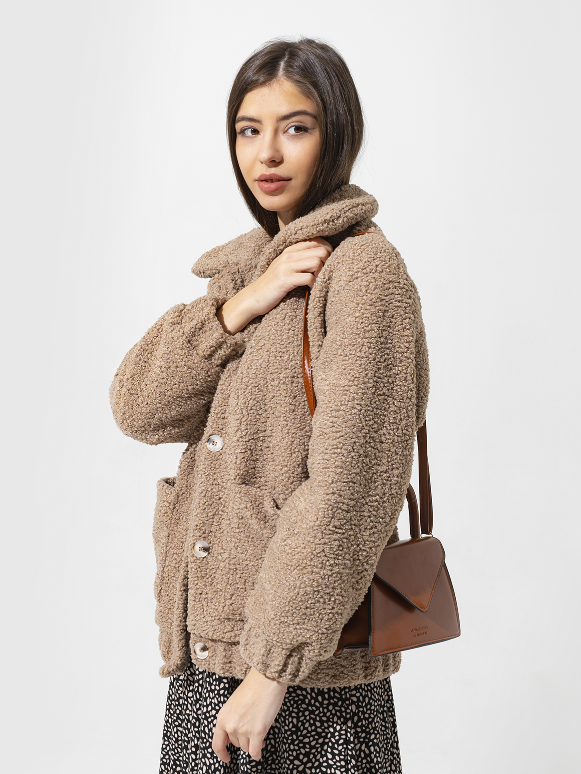 К оверсайз-моделям подойдут тоуты на мягкой основе или сумки-ведра в сдержанной цветовой гамме. Если вы надели полушубок, то можете дополнить его аккуратной меховой сумочкой нестандартной формы.
