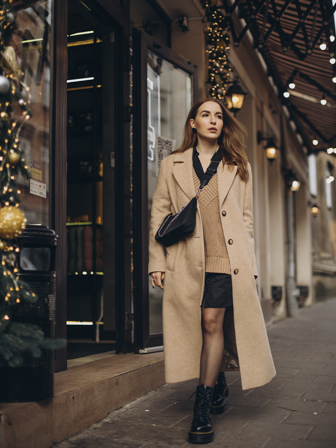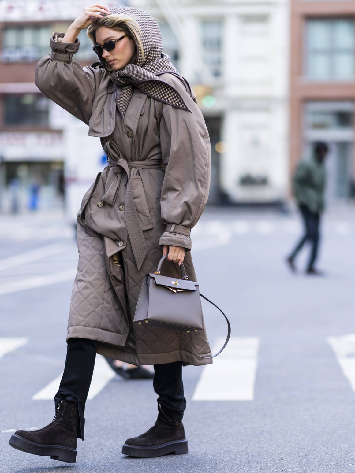 Пальто в этом году лидируют по популярности у фэшн-инфлюенсеров в гардеробе. В моде прямой силуэт, фасон пальто-халат и стеганые модели. Для каждого из этих элементов одежды есть свои правила ношения сумок.