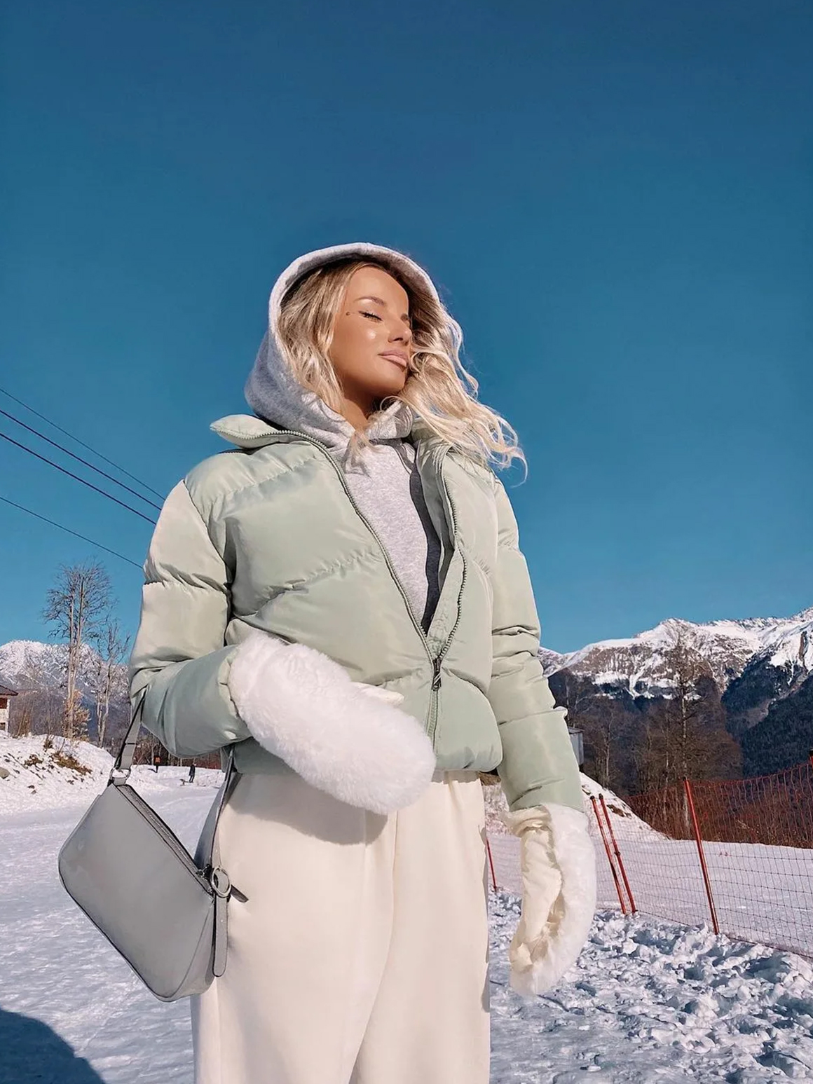 На пуховике присутствуют меховые детали? Тогда лучшим решением будет подбор соответствующей зимней модели из меха. Если на пуховике анималистическая вставка, то меховую сумочку приобретайте с аналогичным принтом. Хорошо смотрятся меховые хобо или небольшие прямоугольные аксессуары с мягкими ручками.