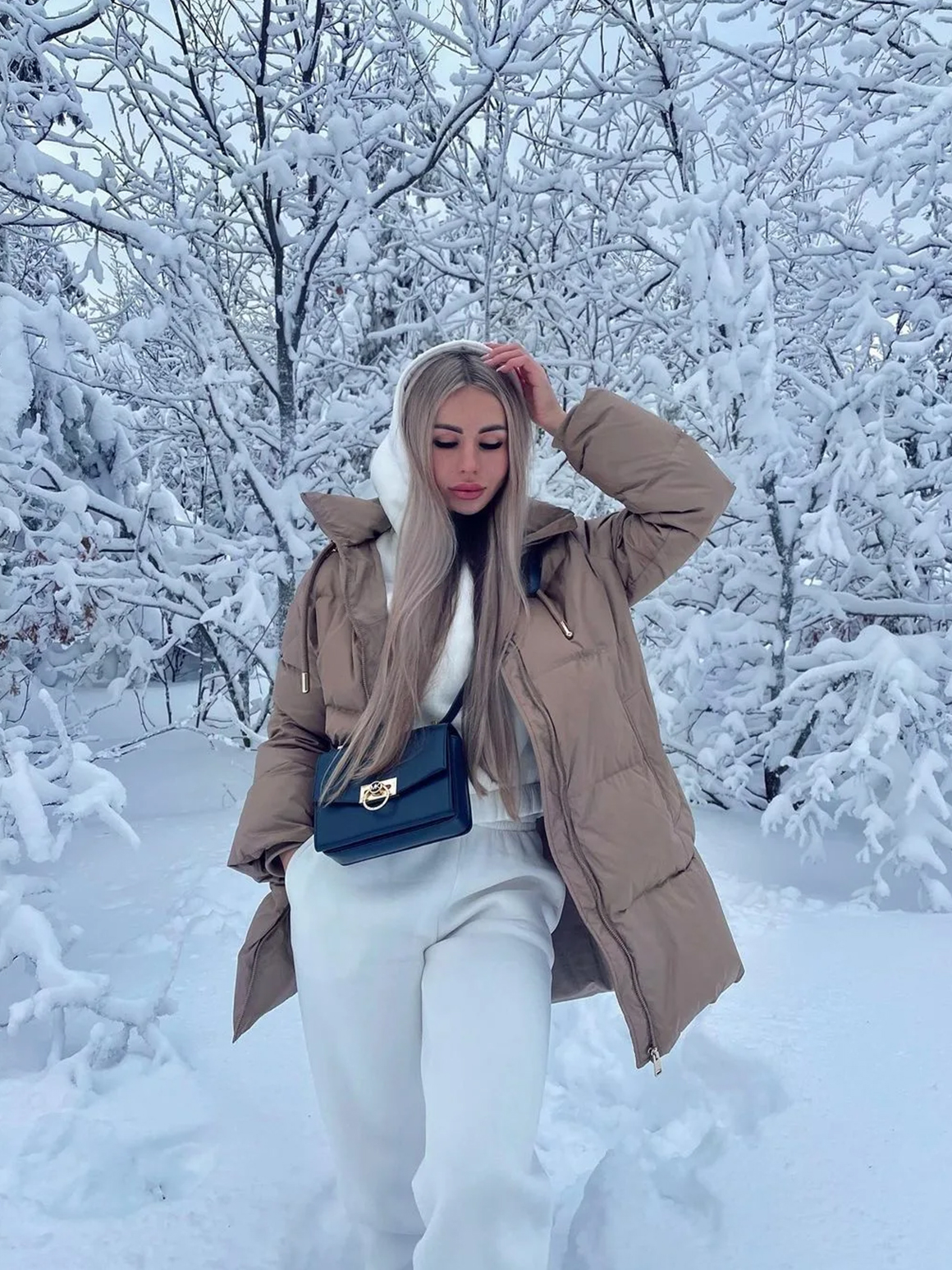 Зимние пуховики в этом году включают в себя миди и макси длину. С любым из них будет хорошо смотреться кожаная хобо разных цветов. Также вы можете подобрать парную сумочку, состоящую из миниатюры и объемной модели. Старайтесь придерживаться сдержанных цветов или ярких оттенков в тон к пуховику.