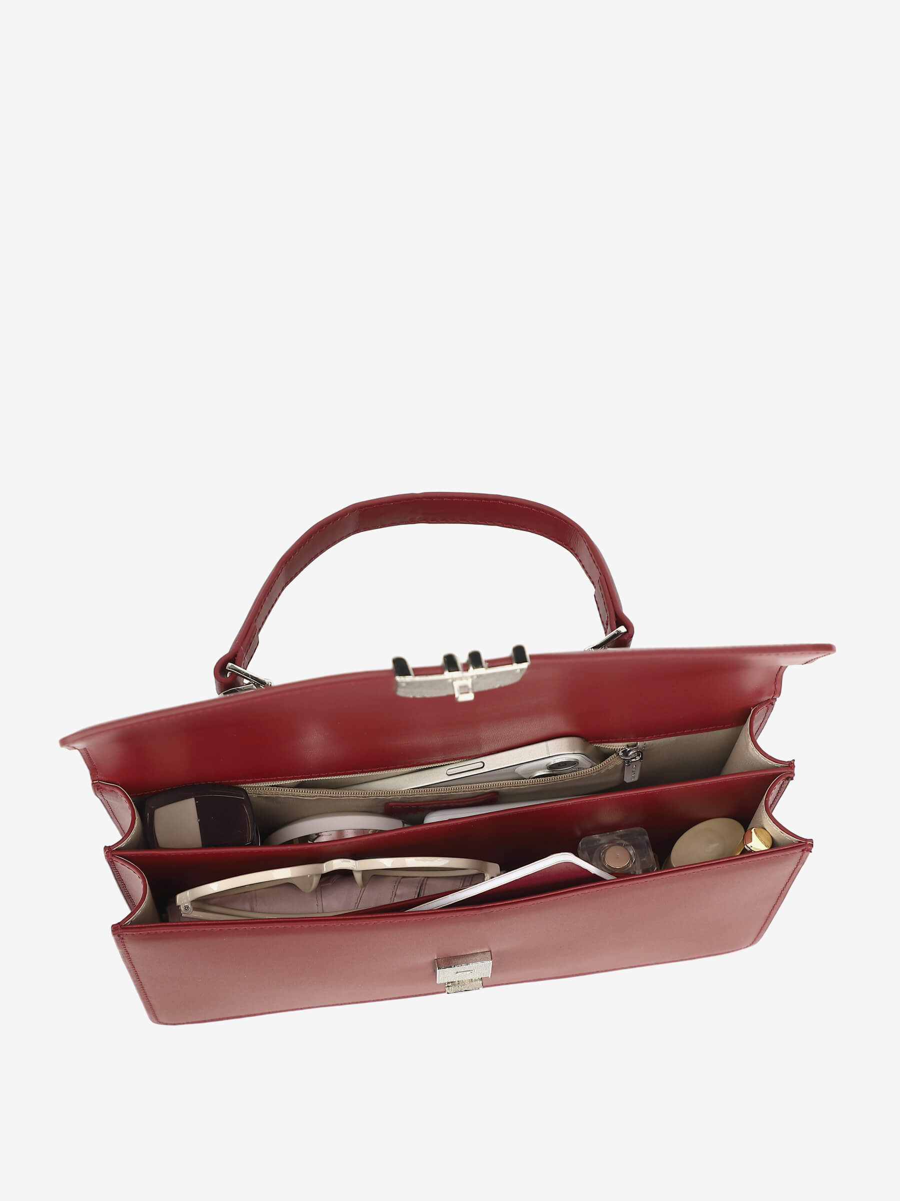 В случае намокания сумки ее следует набить мятой бумагой, чтобы она не потеряла форму. Сушить кожаную сумку на солнце или вблизи источников тепла нельзя, следует это делать при комнатной температуре, аккуратно подвесив ее за ручки. Следите, чтобы сумка не оставалась влажной долгое время.