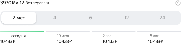 Разделите сумму покупки на 4 платежа. Сначала платите только часть, остальные списываются каждые 2 недели.