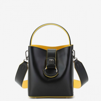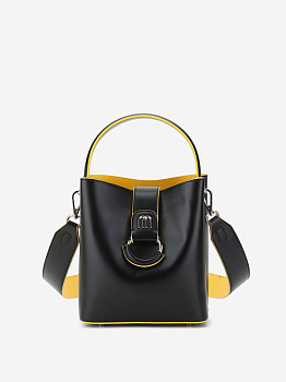 Bucket bag «BIJOU» — находка для тех, кто находится в поисках нестандартного решения своего образа. Отделка и яркое внутреннее пространство сумки выполнены в энергичном цвете «Spectra Yellow». Внутрь поместятся складной зонт, смартфон и кошелек, а быстро найти помаду и ключи не составит труда за счет жесткого дна. Для изготовления этой небольшой модели использовали гладкую экокожу. Закрывается на клапан с магнитной кнопкой, который играет не только функциональную, но и декоративную роль.