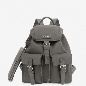 Модель NAOMI с двумя дополнительными внешними карманами выполнена из технологичного и прочного нейлона. Нейлон остается одним из лучших материалов для технологичных и прочных вещей - рюкзаков. В основное отделение, закрывающееся клапаном, поместится планшет, в два внешних накладных кармана - телефон и ключи. Изделие с короткой ручкой дополнено регулируемыми плечевыми ремнями. Лаконичная форма рюкзака дополнена акцентной фурнитурой серебряного оттенка и небольшим съемным аксессуаром в виде кошелька.