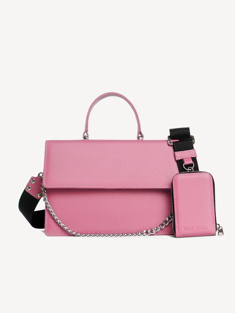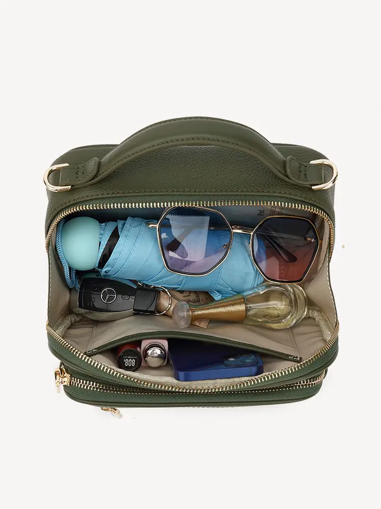 Храните сумку в тканевом чехле отдельно от других вещей, чтобы избежать передачи краски. Для сохранения формы используйте набивку; молнии и замки держите застёгнутыми.